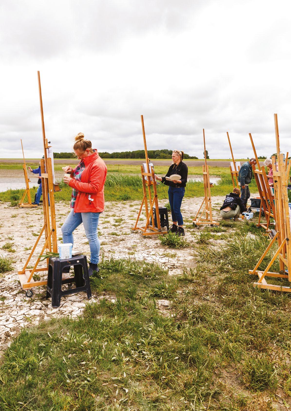 De workshop Schilderen met ’t Wad vond drie keer plaats op 4 en 5 juli, midden op het Wad zelf. Onder leiding van kunstenares en vakdocent Betty van der Kamp werkten de deelnemers met slib, bindmiddel en spatel op canvas.