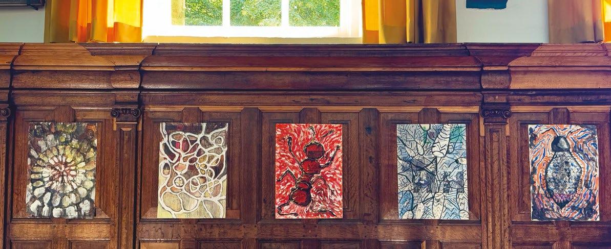 Op een ochtend in juni werkten de kinderen van OBS ’t Fonnemint samen met kunstenaar Betty van der Kamp aan een bijzonder kunstproject. Met verf gemaakt van hun eigen grond en stempels van vijverfolie brachten ze zelfbedachte bodemdieren tot leven op papier. Fantasierijke wezens, van kruipende duizendpoten tot vrolijke insecten, verschenen zo in kleurrijke vormen. Hun kunstwerken waren later te zien in de expositie Libbene Grûn, als speelse en waardevolle aanvulling op de werken van de kunstenaars.