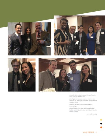 (Top Left) l to r: Jordan Grossman ’97 and his wife, Dara, with Chip McIntosh ’59 (Top Right) l to r: Jessica Anderson ’10, Kim Klein Cauthorn ’81, Arthur Chu ’99, Sarah Pae ’99 and her husband, Al Lee (Bottom Left) Gloria Chou ’06 and her fiancé, Chris Granger (Bottom Right) l to r: Jason Smith ’99 and Sarah McCaw Smith ’99 with Braden Barr ’02 and his wife, Patricia O’Keefe continued next page