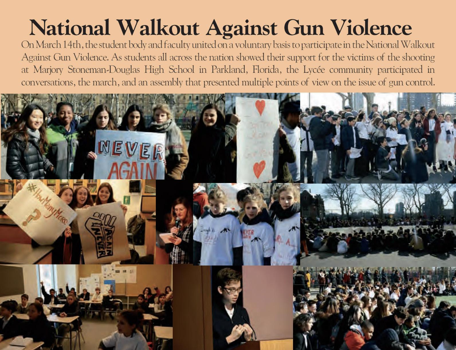 Lycée students and faculty participate in the National Walkout Against Gun Violence in support of the victims of the shooting at Marjory Stoneman Douglas High School in Florida.