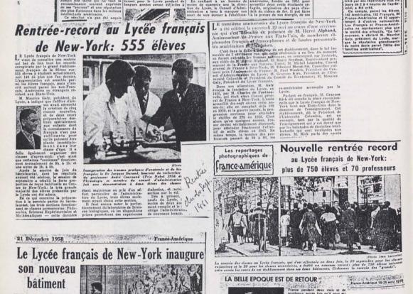 “A school giving education here in two civilisations is held a success” : c’est en ces termes que le New York Times du dimanche 28 juin 1936 évoquait la nature et les raisons du succès du Lycée, un an à peine après qu’il eut ouvert ses portes Le 10 mai 1942, Charles de Fontnouvelle déclarait dans ce même quotidien : “So long as the French culture survives, there will always be a free interchange of ideas between the people of the two nations. In many respects, that was my main purpose in founding the Lycée”.