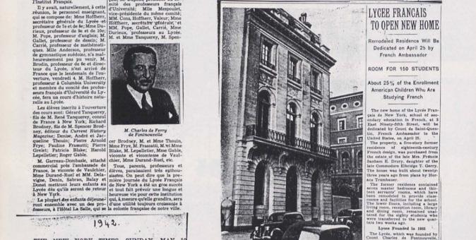 "A school giving education here in two civilisations is held a success": it was in these terms that the New York Times of Sunday, June 28, 1936, spoke of the nature and reasons for the Lycée's success, barely a year after it opened its doors On May 10, 1942, Charles de Fontnouvelle declared in the same newspaper: “So long as the French culture survives, there will always be a free interchange of ideas between the people of the two nations. In many respects, that was my main purpose in founding the Lycée.”