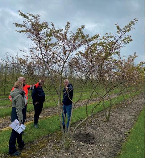 Signe og Nina fra Thing Brandt Landskabsarkitekter og Jackie og Kim fra Malmos Landskaber finder træer til Remisevænget Nord og Vest på Kortegaard Planteskole.