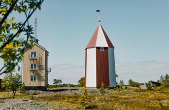 Här kan du besöka den gamla fyren från 1881 som fortfarande är inredd som när fyrvaktaren och hans familj bodde här. På ön finns även en nyare fyr, en lotsstuga, bastu samt en inredd sjöbod för fest. Åk hit med egen båt eller sjötaxi från Kurjoviken.
