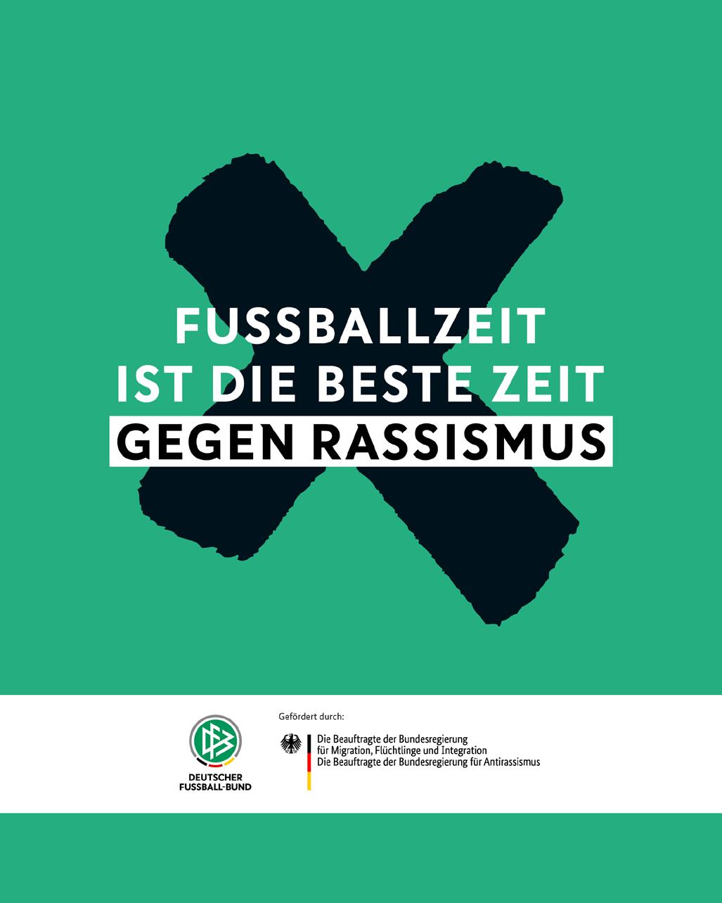 Fußball aufmerksam. An den 21 Finalorten entstehen daher gemeinsame Fotos der Teams mit einer klaren Botschaft: „FUSSBALLZEIT ist die beste Zeit gegen Rassismus“, denn: Fußball ist für alle da – unabhängig von Herkunft, Religion, Hautfarbe oder Sprache. Der Sport, den wir alle schätzen und lieben gelernt haben steht für Fairplay und gegenseitigen Respekt auf und neben dem Platz.