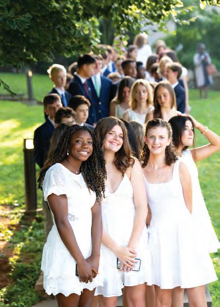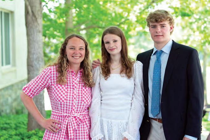 1 Emma Vaughan ’18 (right) and Daniel Lustbader ’18 (left) celebrating the end of freshman orientation at Dartmouth College with a twilight ceremony. 2 Anna Curran ’18 is part of the first group of female Eagle Scouts in the nation. 3 Norwood alumni with their sibling graduates at Commencement on June 8, 2022: (left to right) Church Elmore ’18, Lilly Elmore ’22, Julian Yarborough ’19, Justin Yarborough ’22, Graham Webber ’19, Reid Webber ’22, Emersyn McNamara ’22, Ethan McNamara ’19, Charlie Palma ’22, Lucy Palma ’19, Ben Palma ’22, Michael Hemann ’21, Lauren Hemann ’22, Sammy Hemann ’18, Trevor Vaughn ’22, Gavin Vaughn ’18, Thomas Ogada ’20, and Osewe Ogada ’22. 4 Piya Scielzo ’20 at her third Children’s Business Fair on September 17 in Chevy Chase.
