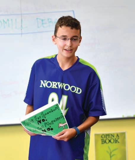 At Norwood, children are exposed to public speaking experiences beginning in pre-kindergarten. “The earlier you begin this work—ideally before fear and selfconsciousness set in—the better,” says Mike Risen, head of lower school. “Some children take to it naturally, while others build their public speaking confidence over time. The important thing is that we provide intentional and consistent public speaking experiences that build and deepen throughout a student’s time at Norwood.”