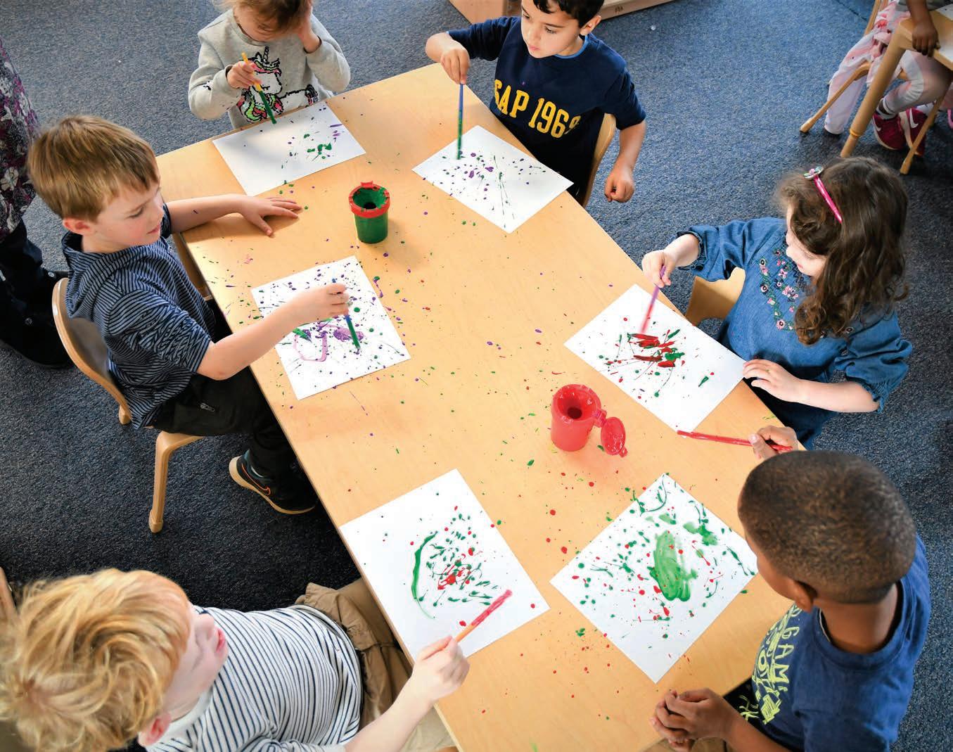 While this photo might look like it was taken during an art class, it was actually taken during a pre-kindergarten science class as students experimented with paint to learn about gravity. Messy, yes. Fun, absolutely!