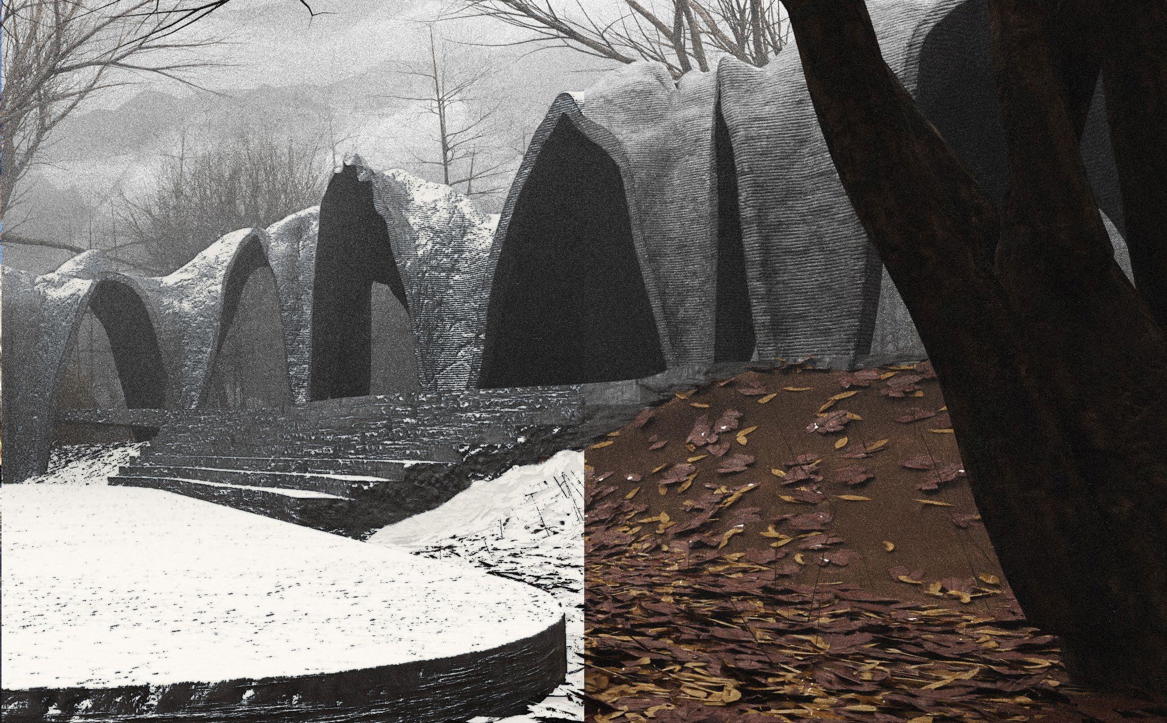 L'objectif de ce projet d'équipe était de créer un lieu de culte commun exploitant le potentiel architectural du béton imprimé en 3D. En partant du concept de tiers-paysage de Gilles Clément et des conférences de Žižek et
