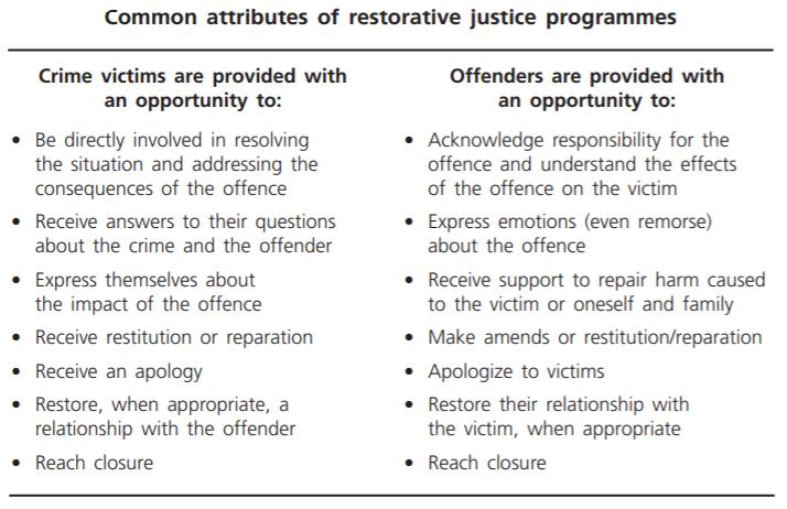 Kaip jau skaitėte anksčiau, atkuriamieji procesai įtraukia aukas ir nusikaltėlius veiksmingiau nei tradicinė teisingumo sistema. Atsižvelgiama į aukų poreikius ir interesus. Nusikaltėliai taip pat mano, kad su jais elgiamasi teisingiau nei tradicinėje teisingumo sistemoje. Abiejų šalių atstovai atkuriamąjį teisingumą sieja su teisingu elgesiu.