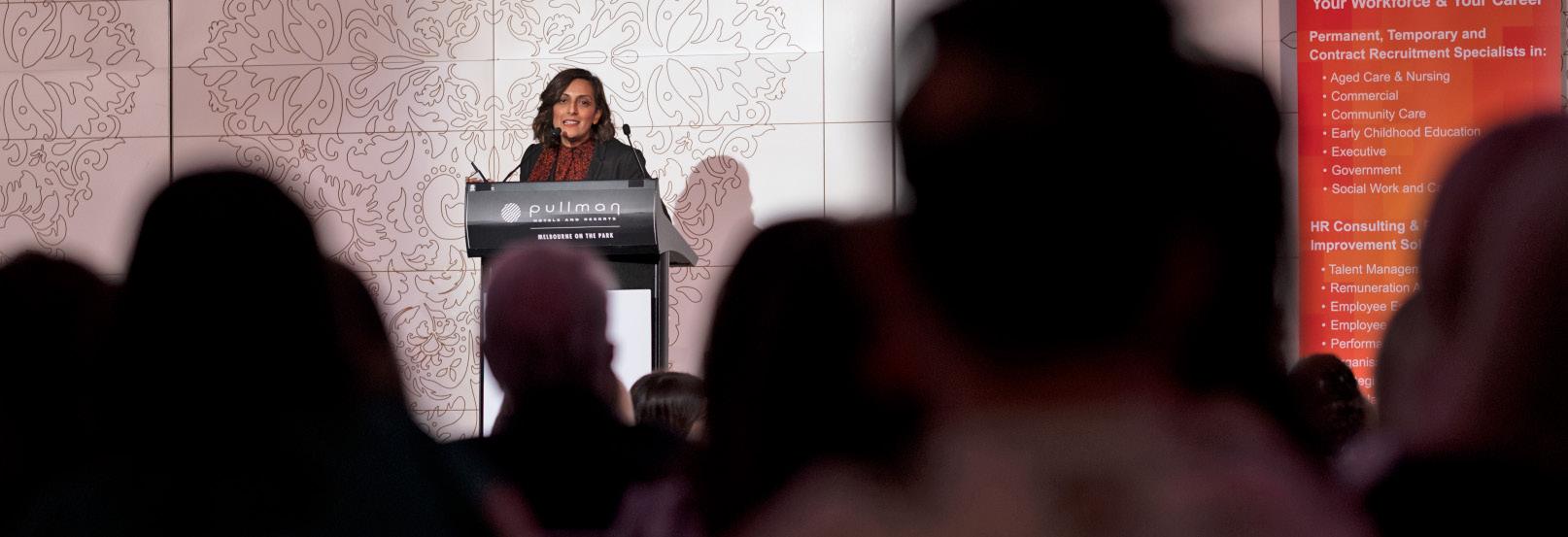 “I hear that women comprise about 20 to 25 per cent of Local Government’s senior officers nationally. Victoria’s currently faring a little better at about 30 to 35 per cent of women representing CEOs and Directors, and I wonder how many of you are in the room tonight.”