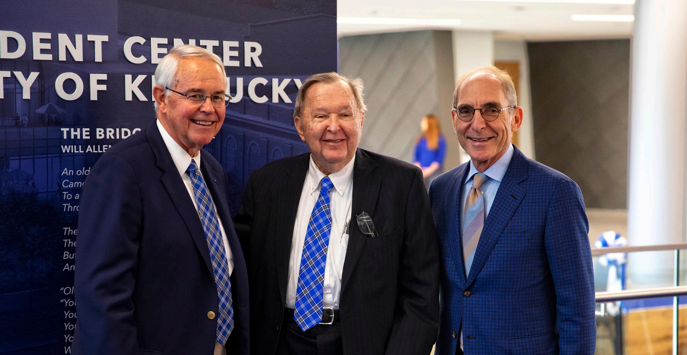 From left to right: Mike Richey, Bill Gatton, and UK President Eli Capilouto at the dedication of the Gatton Student Center on Aug. 31, 2018.