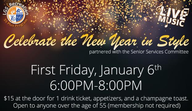 Celebrate the New Year in Style Live Music, Appetizers, Drink Ticket and Champagne Toast $15 at the Door, Ages 55+ 9 10 11 12 13