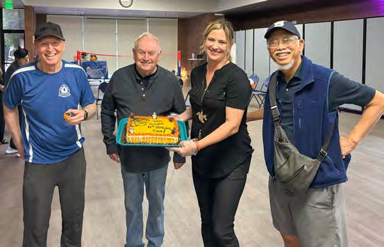 October was full of fall fun! Great Getaway bus trips enjoyed time in Half Moon Bay, learning about the ghost haunting Moss Beach Distillery, touring a goat farm, exploring glass blowing, and visiting a pumpkin patch. Hands-On Art made incredible storefrontworthy Halloween wreaths (see picture on page 3). Bridge raised $215 for the Alzheimer’s Association. We had two informative guest speakers: attorney Barbara Nesbit on legal matters of Estate Planning and Trust Administration, as well as a panel of experts discussing Downsizing. If you missed the Downsizing talk, there are info packets available for pickup at the 55 Plus office. Brooke held the inaugural Team Trivia event, and the "Fearsome Foursome" took home trophies. Jackie’s Jewels, our new beading workshop program, also began, and members crafted three boo-tiful bracelets. Bocce was back, and members enjoyed a lovely fall day in Saratoga trying to land their bocces closest to the pallino. We will celebrate Halloween by handing out goodies at the Library and a Trick-or-Treat-themed Food for Thought, complete with a costume contest. As we celebrate the season, "Elton John" even made a guest appearance at Monday Chair Zumba!