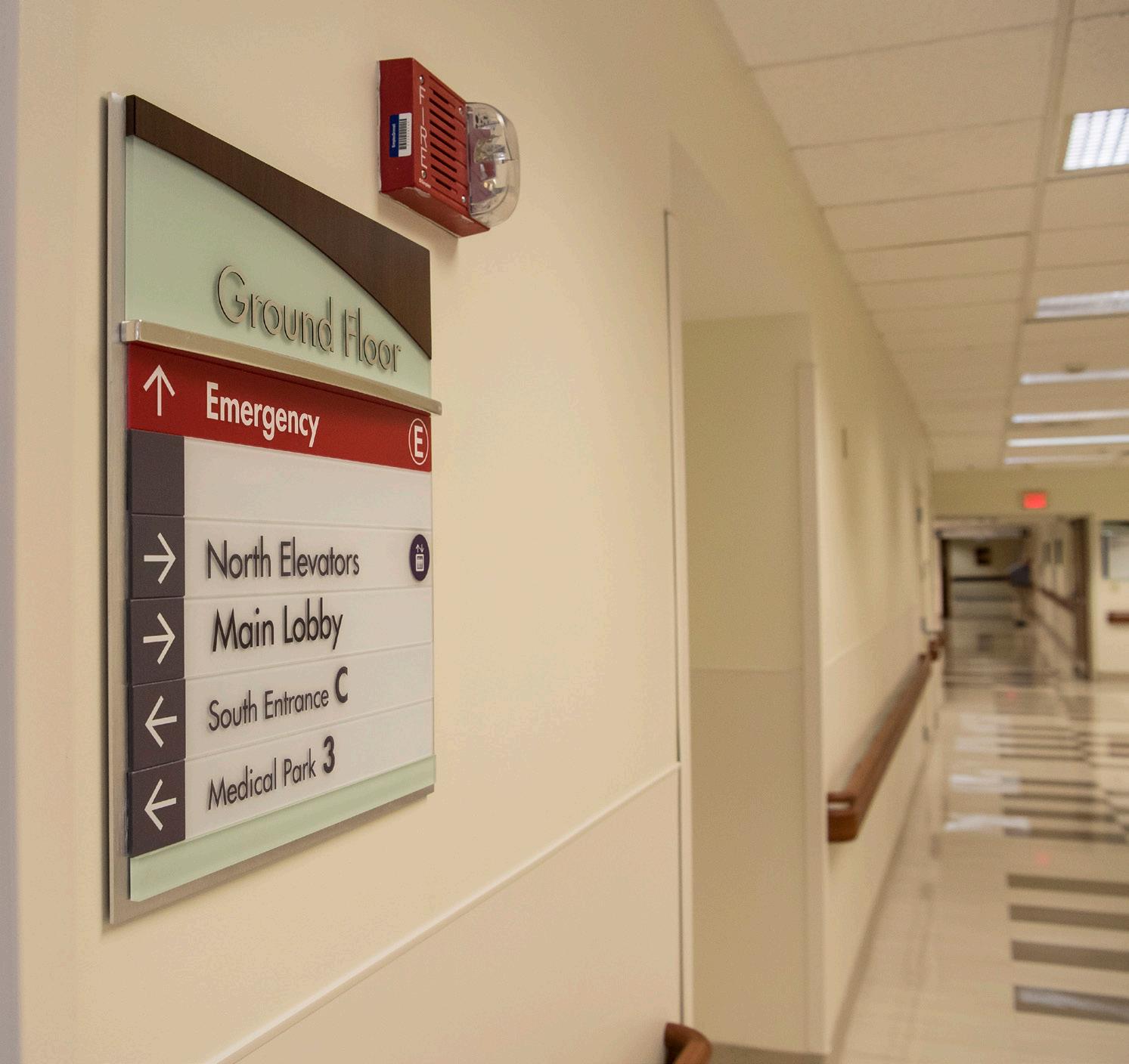 In 2013, Baptist Healthcare System changed its name to Baptist Health and rebranded all 7 hospitals and 60 medical office buildings throughout Kentucky, creating a need for new interior and exterior signage. Working with FMG Design closely to maximize brand impact, L&H Companies project managed, fabricated, and installed various signs types in this multi-location project successfully. Both the exterior and interior signage communicates Baptist Health’s new brand identity with readable entry features and pedestrian wayfinding guiding patients to their destination, while minimizing confusion.