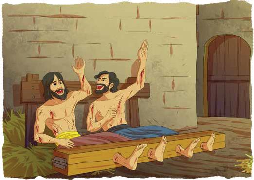 iyvnen, SeSindnen. isini Tavad mividnen sapyrobileSi da bodiSi mouxades pavles da silas. maTi iqedan gamoyvanis Semdeg sTxoves, rom filipia daetovebinaT. pavle da sila jer filipiaSi mcxovreb erT-erTi qristianis, lidias saxlSi wavidnen. iq Sexvdnen lidias da sxva morwmuneebs. maT gaamxenes isini da mouwodes maT, rom yofiliyYvnen mamacni. Semdeg pavlem da silam datoves filipia.