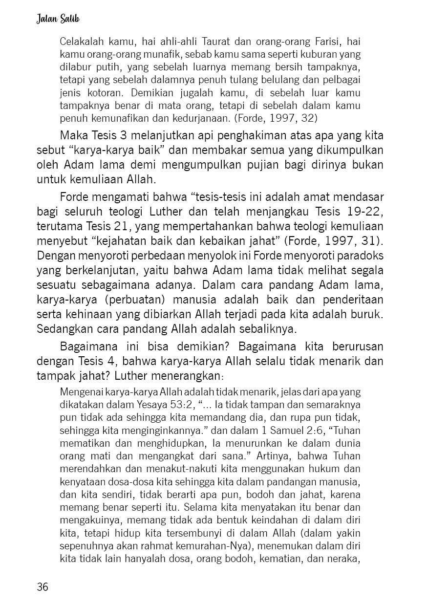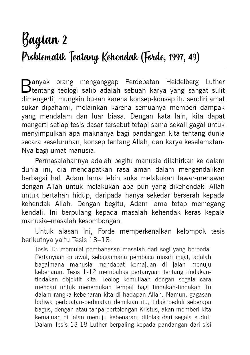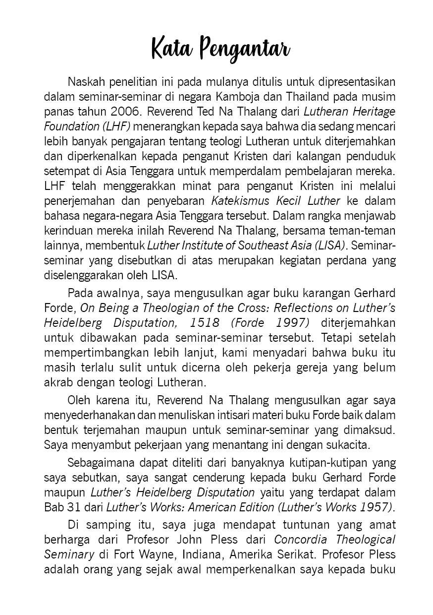 Semua kutipan yang dikutip”(Forde, 1997 . . .)” adalah dari: On Being a Theologian of the Cross: Re ection on Luther's Heidelberg Disputation, 1518. Penulis: Gerhard 0. Forde, Hak Cipta © 1997 William B. Eerdmans Publishing Company, dan telah ditetapkan memenuhi ketetapan penerbit sebagai"Sesuai Panduan Penggunaan Wajar''.