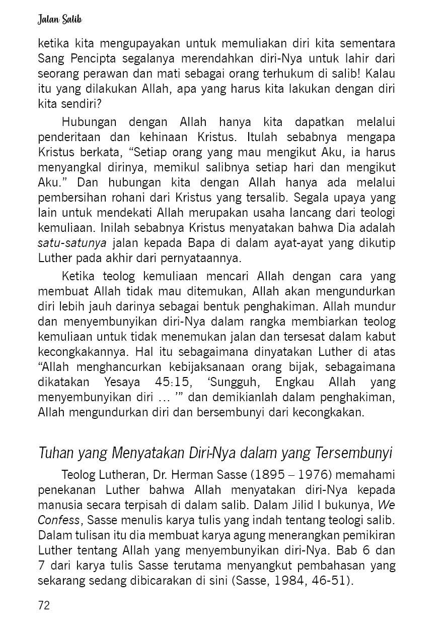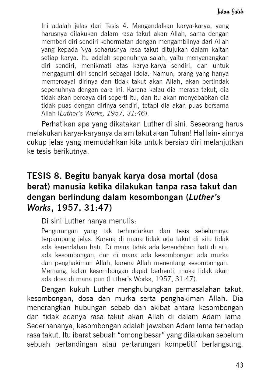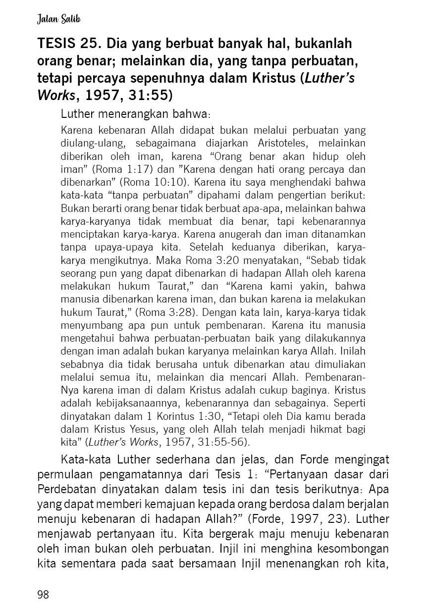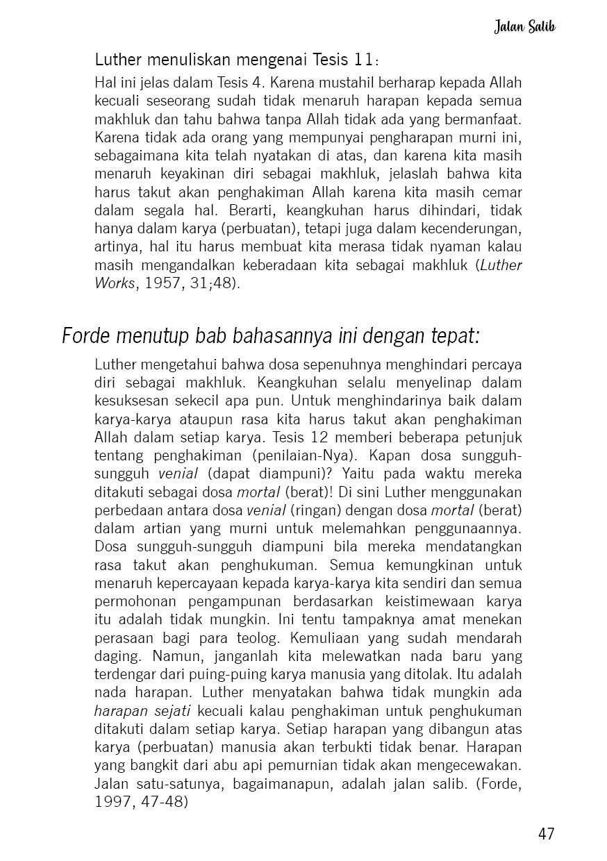 Semua kutipan yang dikutip”(Forde, 1997 . . .)” adalah dari: On Being a Theologian of the Cross: Re ection on Luther's Heidelberg Disputation, 1518. Penulis: Gerhard 0. Forde, Hak Cipta © 1997 William B. Eerdmans Publishing Company, dan telah ditetapkan memenuhi ketetapan penerbit sebagai"Sesuai Panduan Penggunaan Wajar''.