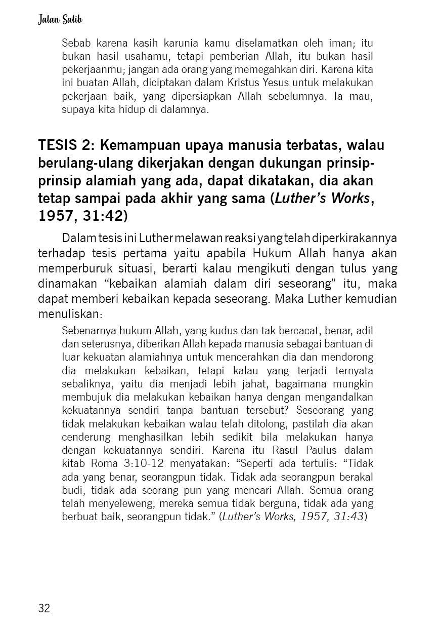 Semua kutipan yang dikutip”(Luther's Works, 1957,31 . . .)” adalah dari: Luther's Works Volume 31 ; Penulis: Martin Luther, died it oleh Harold J. Grimm, Hak Cipta ©1957, Fortress Press. Digunakan dengan izin dari Augsburg Fortress Publishers.