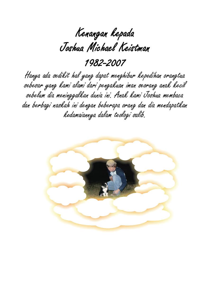 Penerbitan buku ini dimungkinkan karena dedikasi waktu yang tidak terhitung nilainya dari Rev. Herb Keitsman dan melalui persembahan dari Rev. & lbu Herb Keistman dalam kenangan berkatTuhan alas putra terkasih Joshua Michael Keistman, dan sebagai ungkapan kasih untuk semua orang Kristen di seluruh dunia. Soli Deo Gloria!