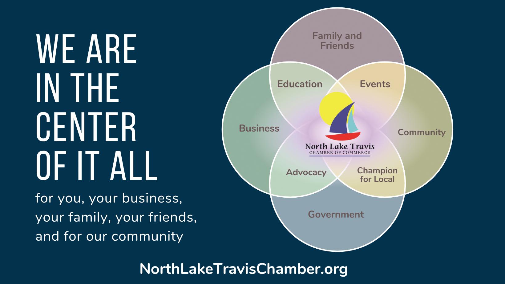 The North Lake Travis Chamber of Commerce is dedicated to developing robust resources for our business and professional members in the growing communities of Jonestown, Lago Vista and Point Venture. The Chamber is proud to be in the center of it all, bringing professionals, businesses, municipal and state government, visitors and citizens together to build a stronger community.