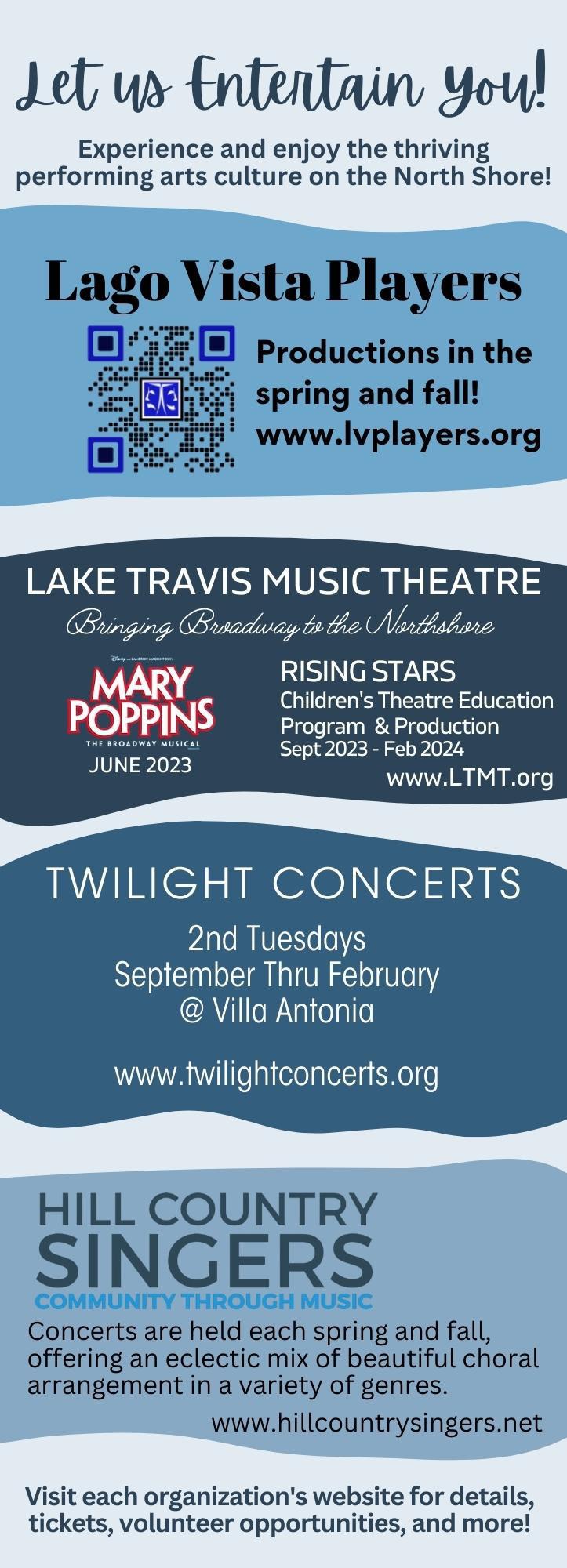 The North Shore of Lake Travis boasts three beautiful communities, all graced with beautiful shoreline views and an enviable lifestyle: Jonestown, Lago Vista and Point Venture. Recent growth has been explosive, and our demographics are changing almost daily! But no matter how many people discover the peace and serenity of our shores, some aspects do not change.