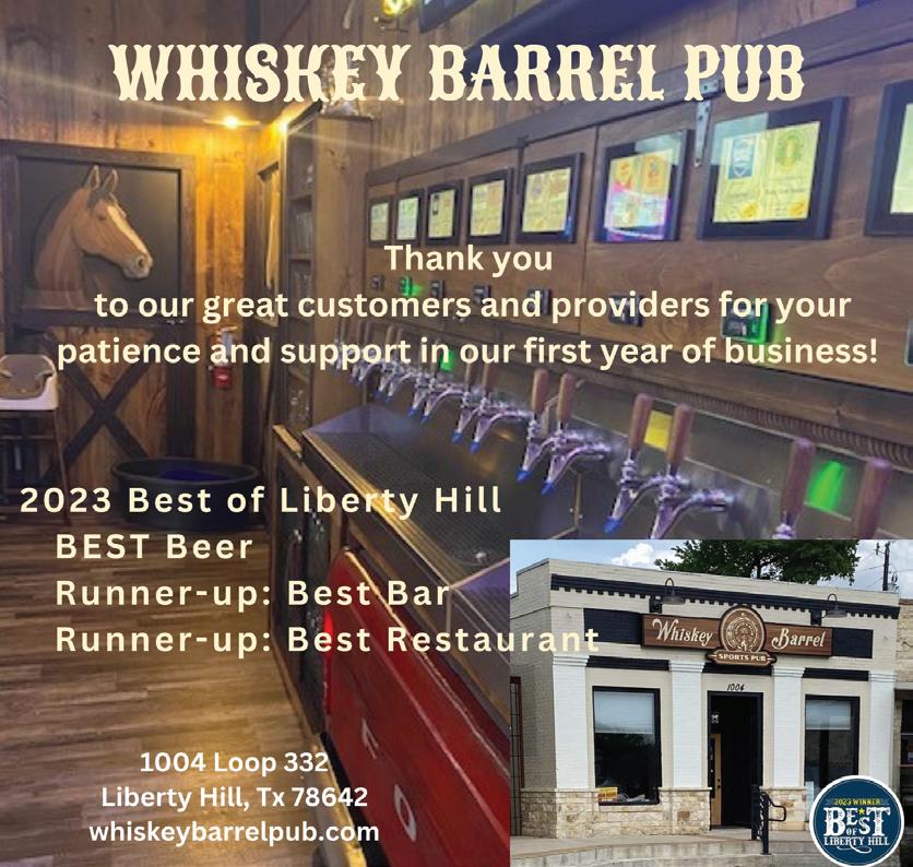 The information in this publication was compiled with great care to assure the accuracy of editorial content and advertising copy. Liberty Hill Independent Monthly and its parent company assume no liability for the accuracy of the information reported to us herein, and the opinions expressed do not necessarily reflect the views of the publisher. For advertising rates and information, or to obtain additional copies, call (512) 778-5577 or send email to rachel@LHIndependent.com. This publication is truly a collaborative effort of experienced journalists, a professional design team, advertising specialists and many others passionate about sharing the story of Liberty Hill, Texas. Copyright©2023 Liberty Hill Independent News & Media/Liberty Hill Independent. All rights reserved. No part of this publication may be reproduced in any form or by any means without permission in writing from the publisher. Contact Us: (512) 778-5577 | rachel@LHIndependent.com | Liberty Hill Independent, PO Box 204, Liberty Hill, TX 78642