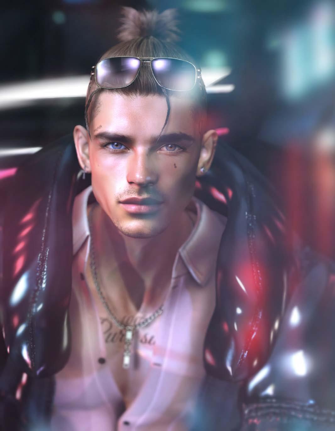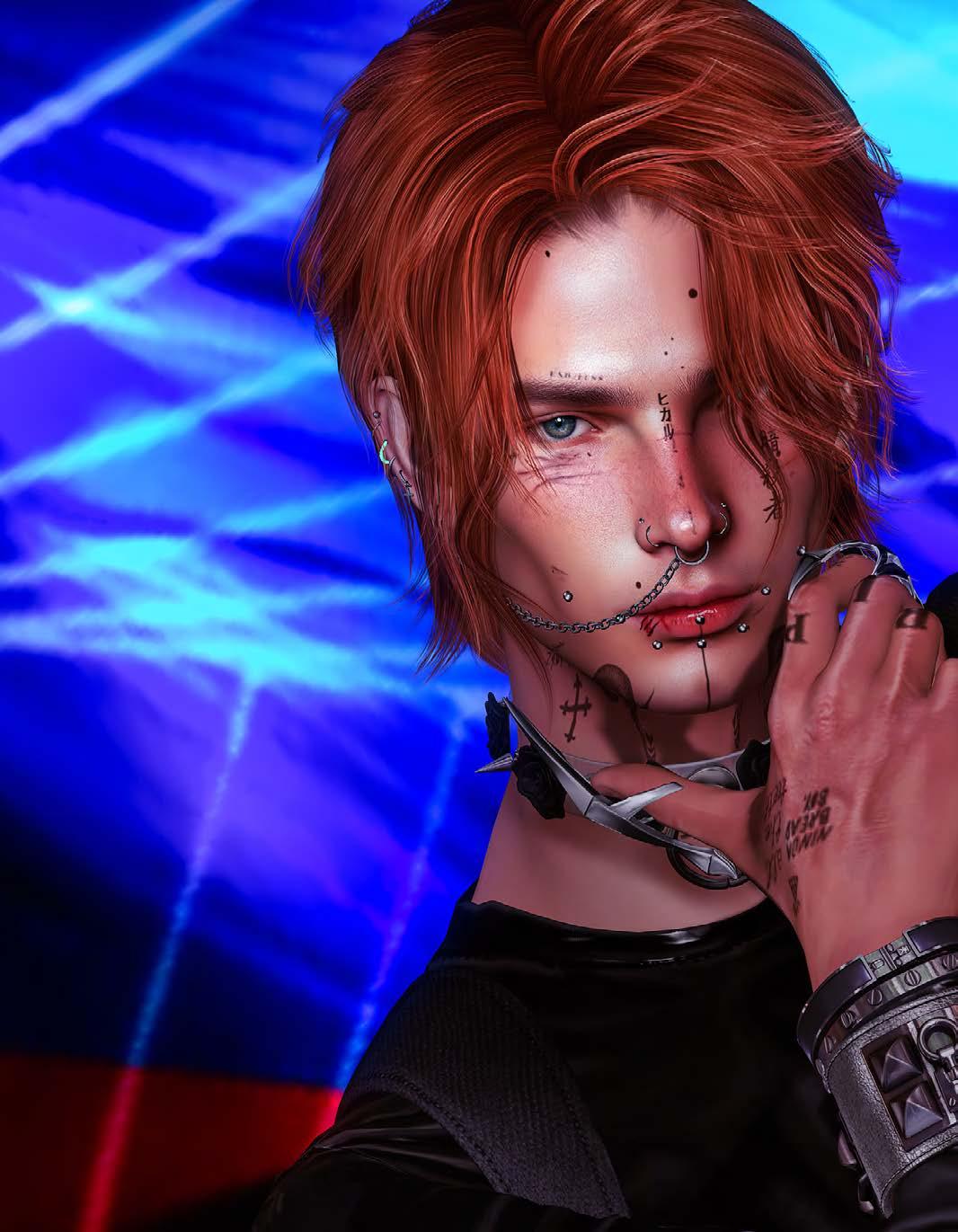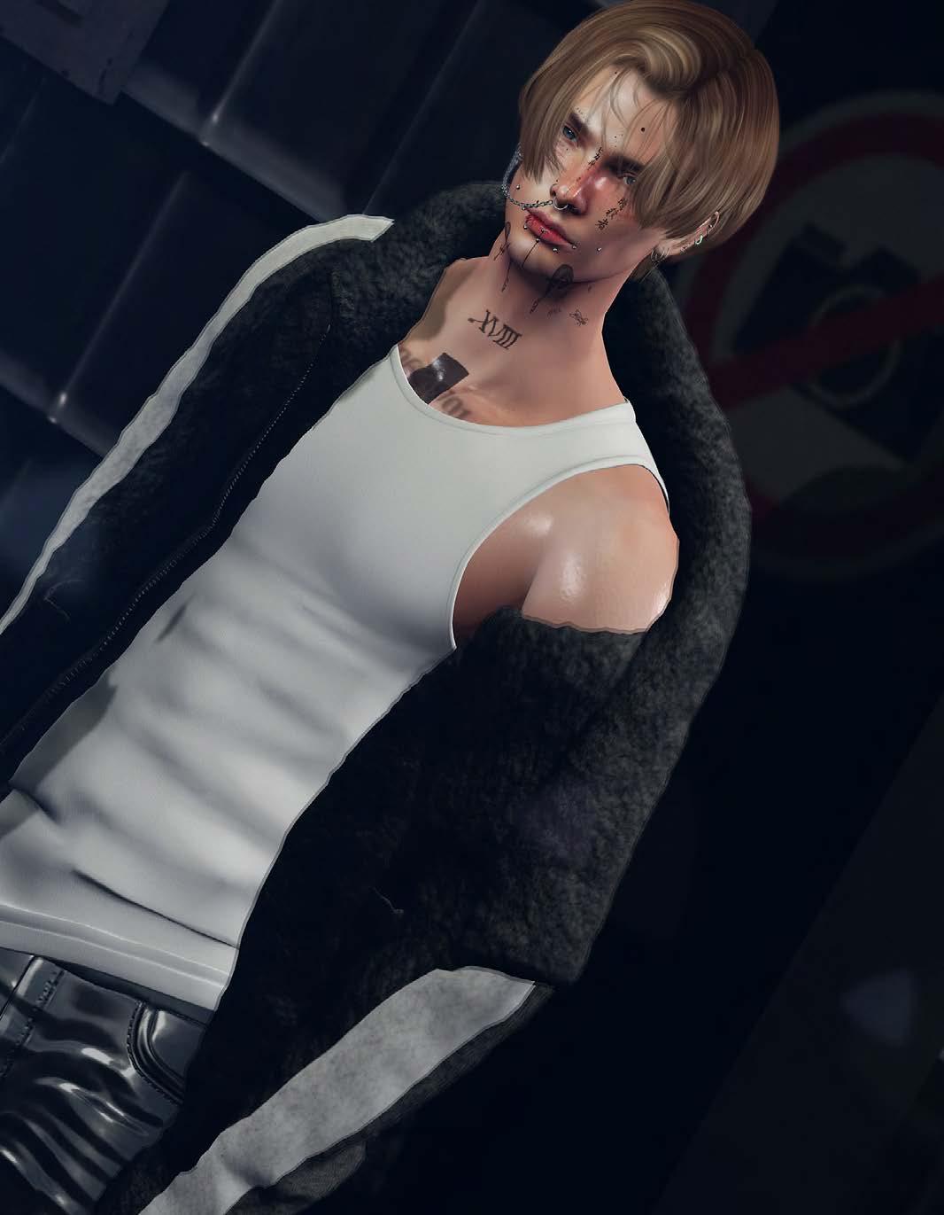 THE COVER: MANU WRYDAN, OWNER-DESIGNER OF BONDI + PHOTOGRAPHER SKIP STAHELI MANU IS WEARING: HAIR DURA U105 + HEAD LELUTKA EVOX EON + BODY SIGNATURE GIANNI + TATTOO CORAZON NARI EVO X + TOP ASCEND FASHION BRYSON LONG COAT + SMITH TANK + PANTS ODIREN JOHNNY + ACCESSORIES BONDI NASH GLASSES / SEPTUM GACHA 1.KING SILVER / THE EXTROVERT NOSTRIL + ECLIPSE ART STUDIO UZUMAKI MALE HUMAN EVOX EARRINGS + REALEVIL INDUSTRIES SUICIDE COLLAR + [KUNST] MEN’S RINGS COLLECTION