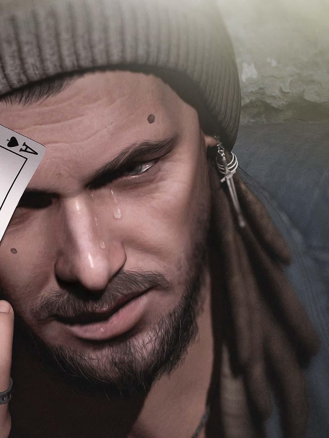 PAGE 146: HAIR S-CLUB LISA + TATTOO HEOL DRAGON LONG TATTOO AND SCARS + CAMEO BLINDFOLD (arms) + TOP THIRST STIRLING SHIRT + ACCESSORIES DEADWOOL ENIGMA GLASSES + RICHB EON EARRINGS AND SUKEN BANDS