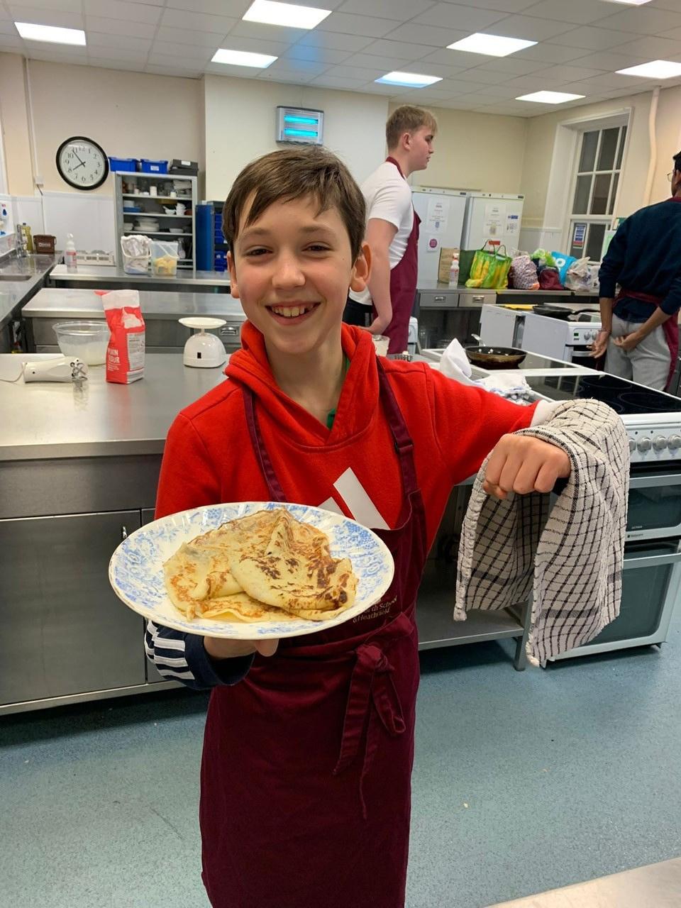 Studentshavebeenworkinghardimprovingtheircookingskills! PicturedhereisGeorge(Y6)withhispancakeshemadefor PancakeDayinMarch.