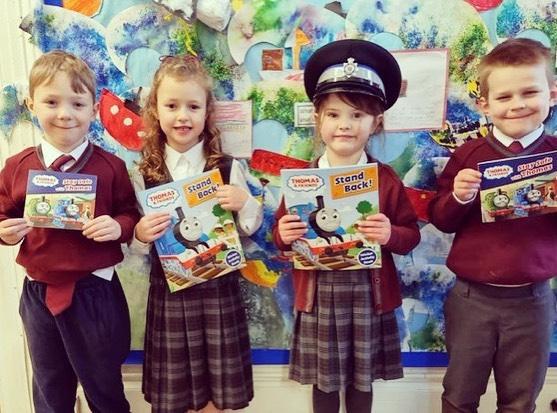 AhugethankyoutotheBritish TransportPolicewhocameinto visitourlovelyY1children, presentingthemwithsome ThomasandFriendsbookswhich informyoungchildrenofthe railwayenvironment;teaching themwhoworksontherailway andthemanydifferenthazards. OurHeathfieldOrigamiClublook pleasedwiththeircreations!