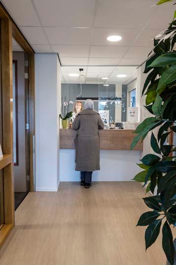 bleek het financieel niet haalbaar.’ Ze organiseerden een gesprek waarbij de gemeente, Hilverzorg, de regionale huisartsenorganisatie en de zorgverzekeraar allemaal aan tafel zaten. ‘Ze wilden allemaal alleen iets doen als de ander ook iets deed.’ En zo is het uiteindelijk gelukt, met financiële tegemoetkomingen van alle partijen. Najaar 2023 trok de praktijk in de nieuwe praktijkruimte. ‘Je weet dat je werkomgeving belangrijk is voor je werkplezier, maar toen pas merkten we hoe sterk dat effect is. Het werkt hier veel lichter en rustiger, er hangt een fijne energie.’ Licht en rust waren ook precies de thema’s die ze vooraf voor ogen hadden. ‘In onze vorige praktijk kwam helemaal geen daglicht. Nu hebben we openslaande deuren naar een enorm terras.’