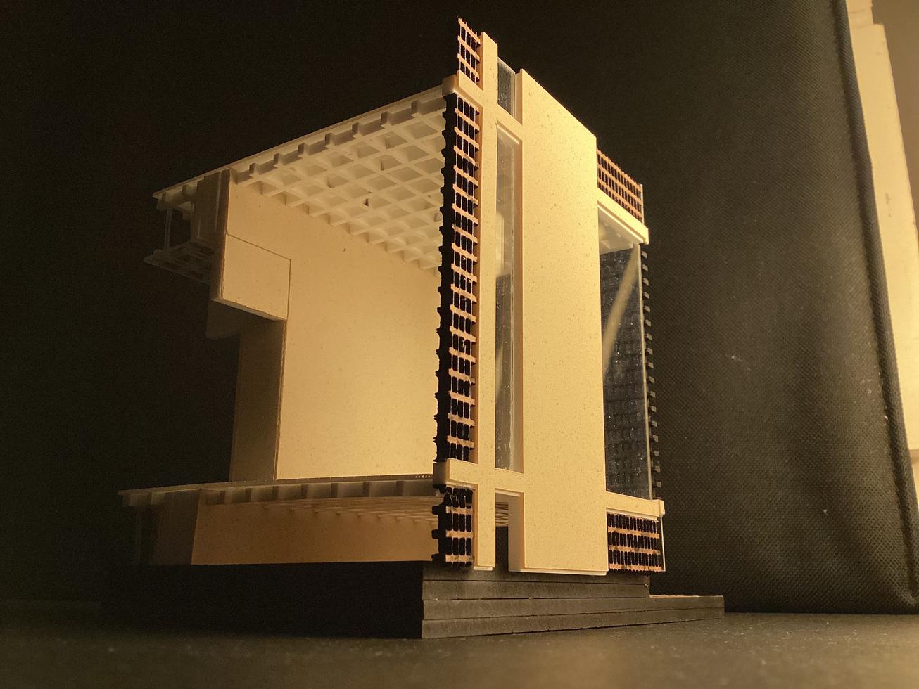Creando espacios únicos mediante una fachada dinámica, caracterizada por bloques calados y un material de concreto visto en tono crema