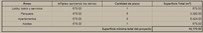 Each area has a specific footage in which its specific use is evidenced. As in the apartment areas.