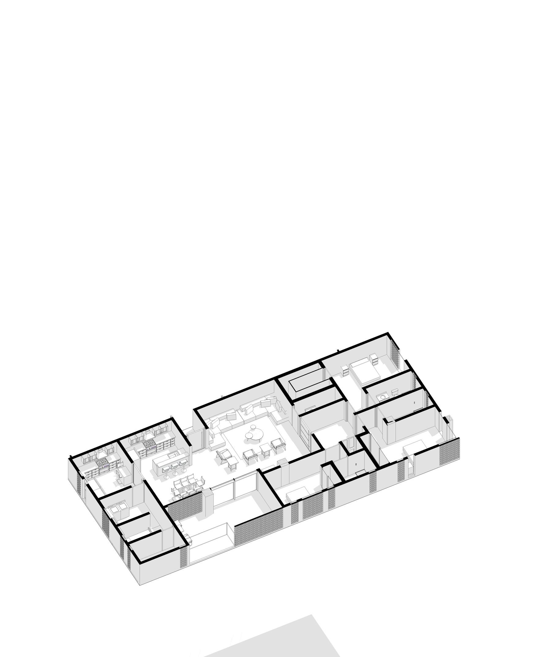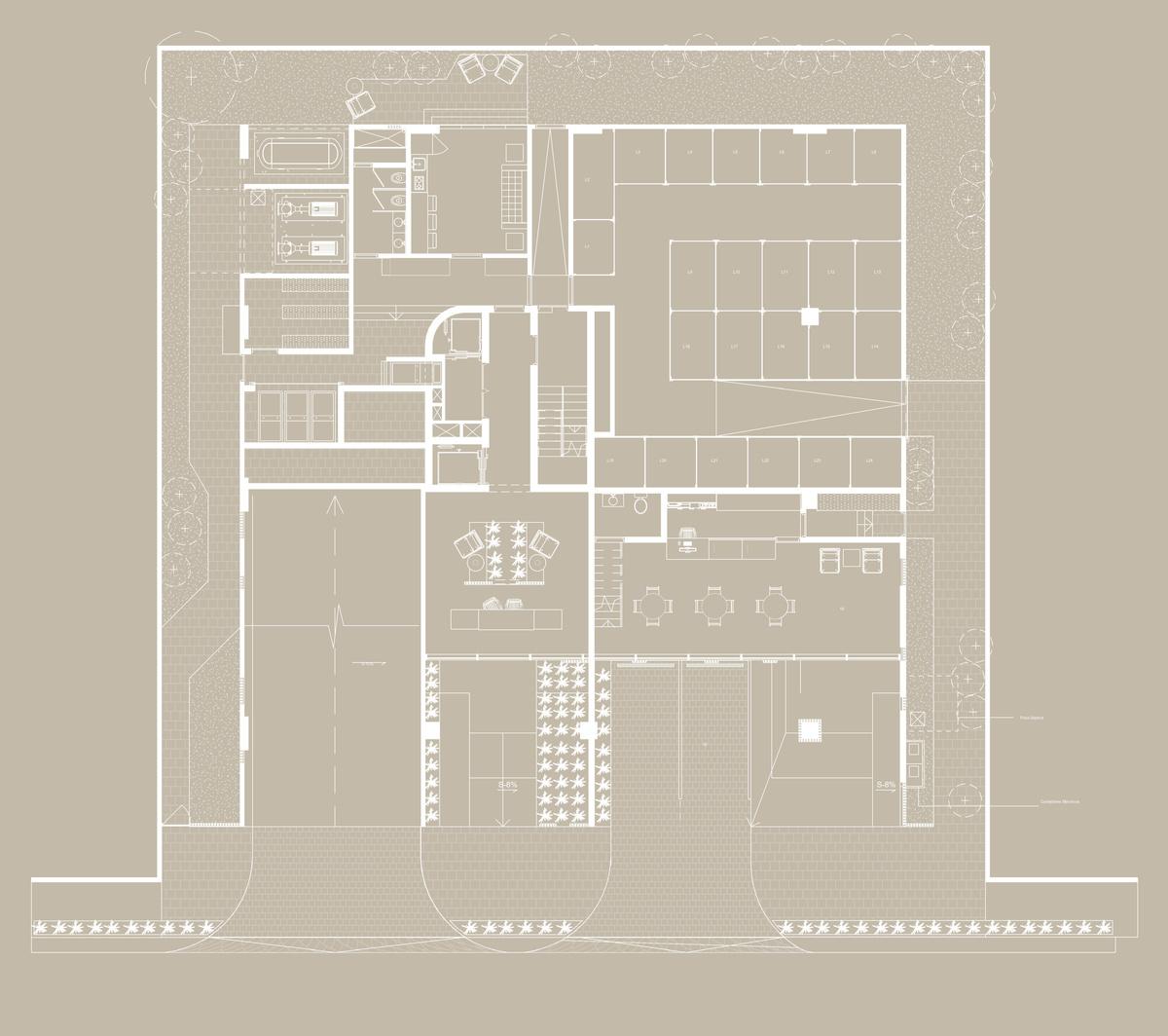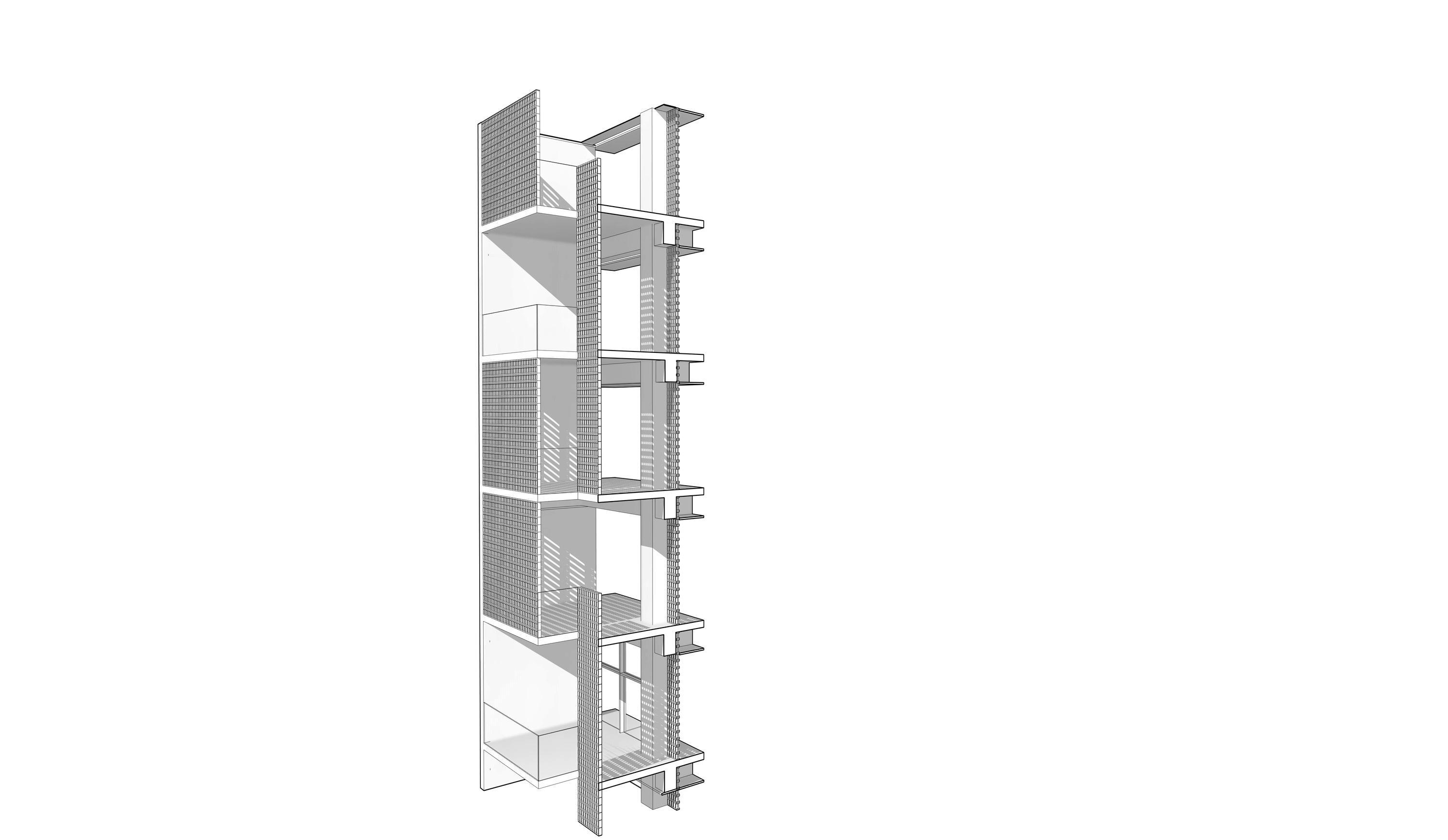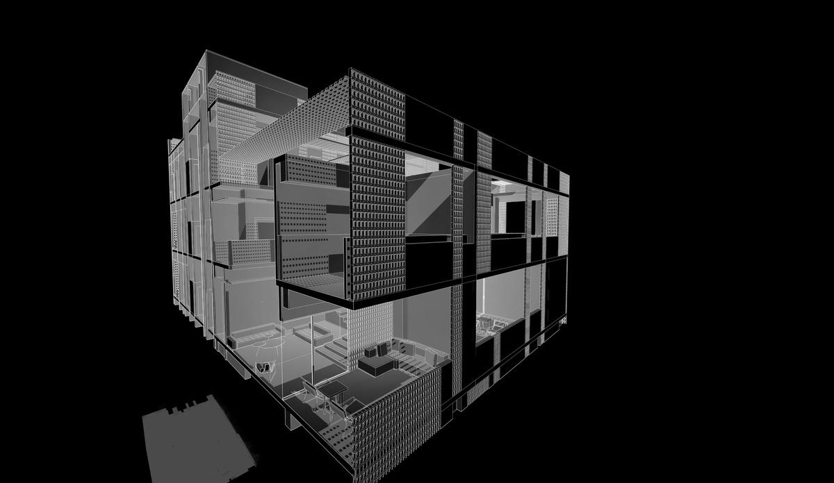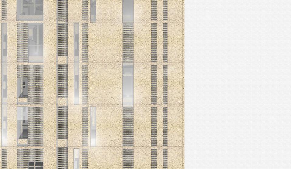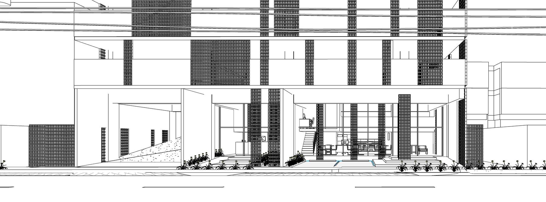 This notion of movement became central to our design intentions To achieve this we used a type of blockwork that allows for natural light and ventilation. As well as the movement of these pieces along the façade.