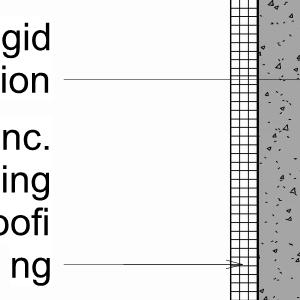 This is a true 3D drawing of the 2D detail drawing 1. Materials are rendered in color and labeled with the material legend. This 3D detail drawing offers more direct perspective of material component.