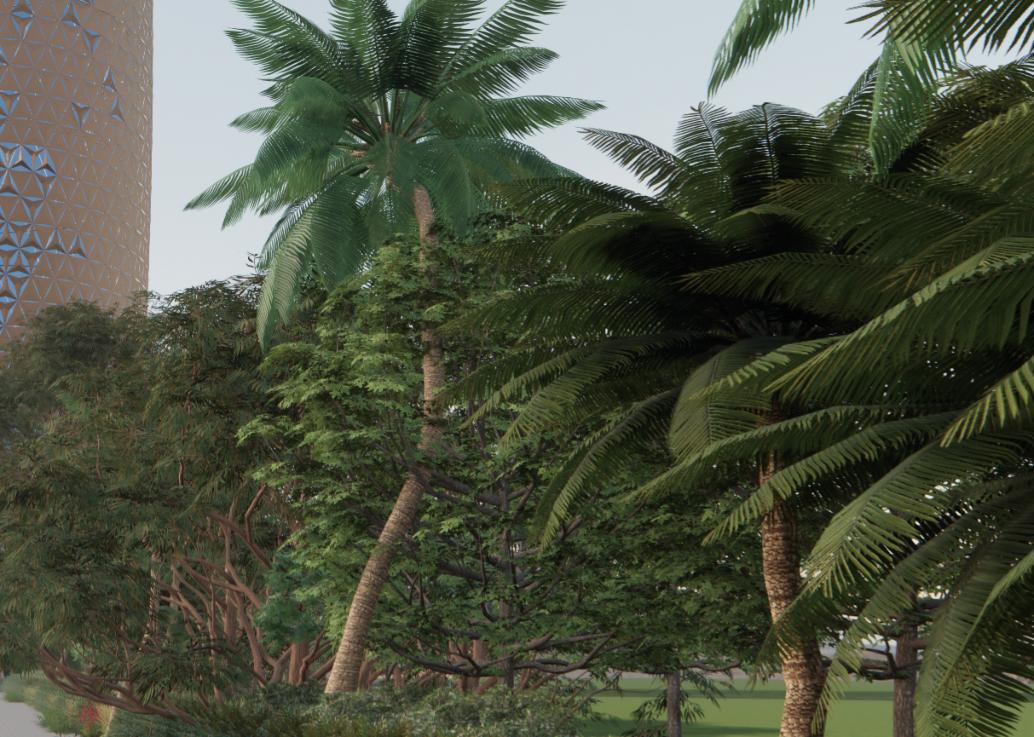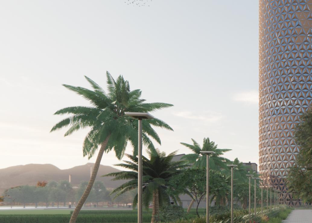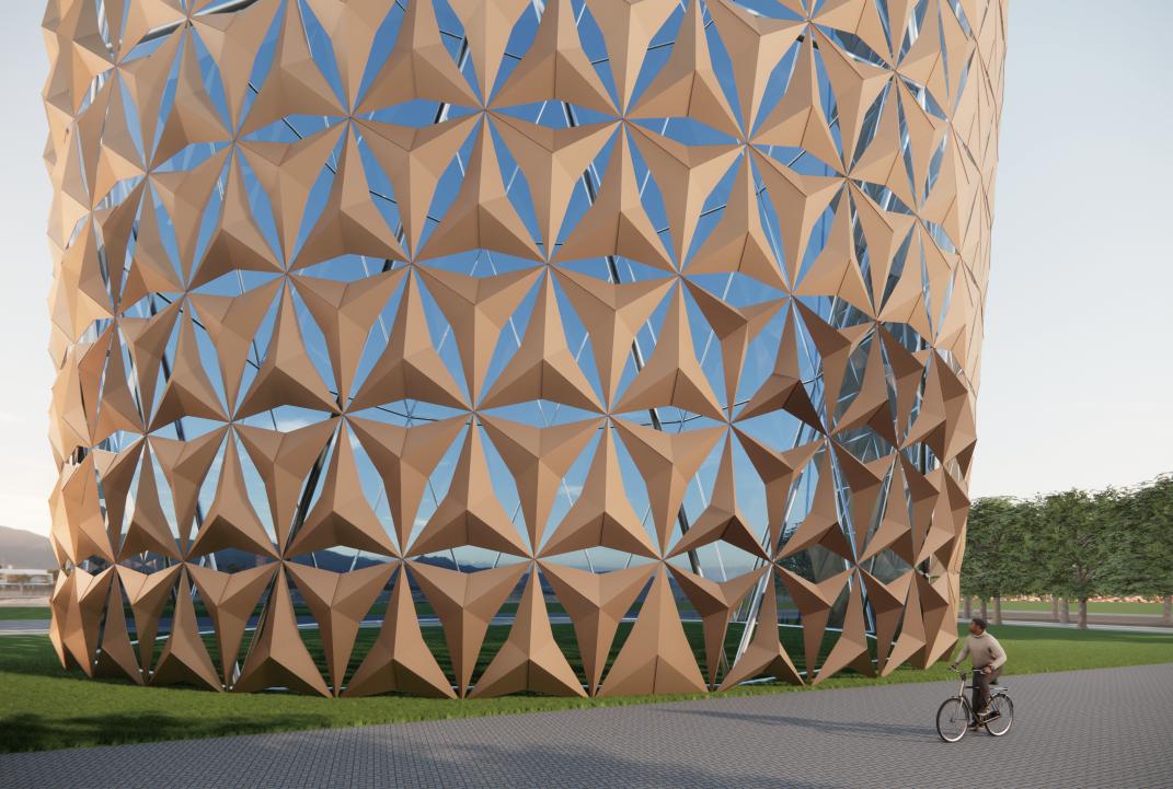 For this project, we were required to model an existing structure rather than designing our own. I chose Al-Bahar Tower as my model. I used Dynamo in Revit to model the façade and Revit to shape the building. The environment and people were then rendered using Enscape.