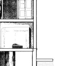 This detail drawing showcase a section detail of balcony connected to the storefront window. e structural thermal break for the balcony connection will help to reduce the heat loss from the warm building interior into cold exterior environment.