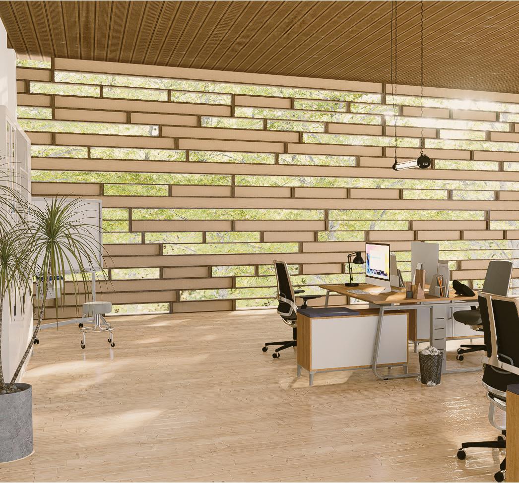 Modeled the office wall by using Grasshopper in Rhinoceros in provided floor plan. en rendered office interior using the D5 rendering program.