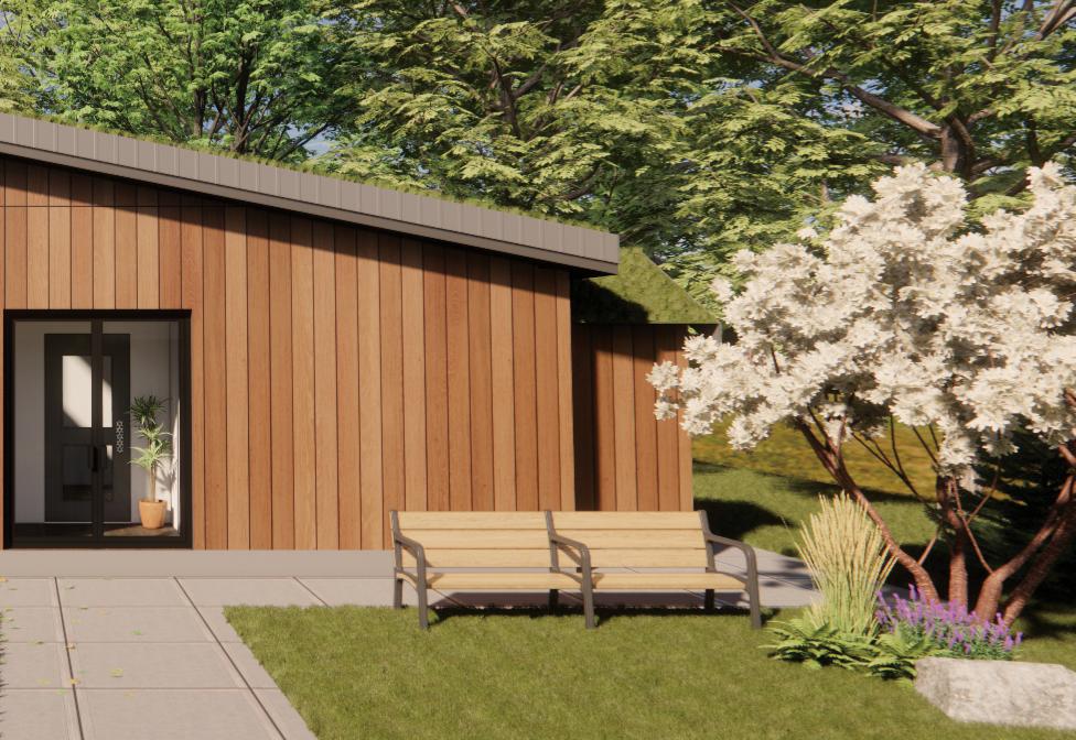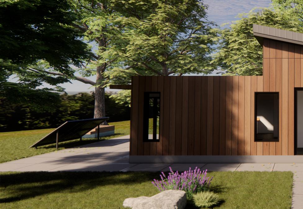 To minimize the overall impact of surrounding site and neighborhood, this small building uses eco-friendly construction materials and recycled materials as the main components of the building. To avoid heavy excavation on site for the foundation, the recycled stainless steel made screw piles are used as foundation to support the whole building. Wall and floor assembly are all choosing eco-friendly construction materials. The green roof on this building is beautiful and fits in with environment. Wood pellets boiler and stove are helping with heating and hot water supply. While Toronto Hydro provide the electricity, the south facing solar panel would be ready as an addon supply for electricity.