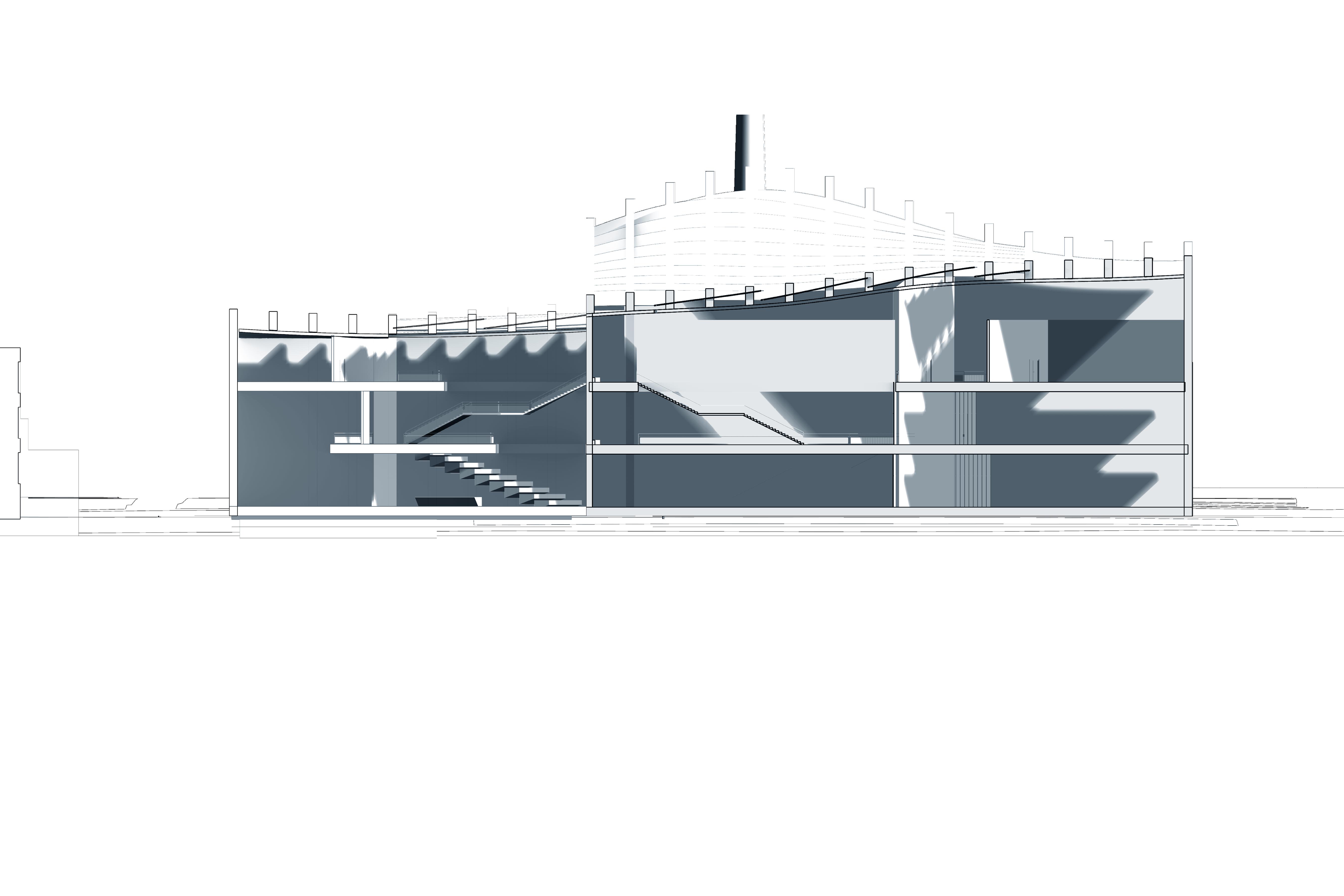 Above: Split Section through Welcome and Recycling Atriums