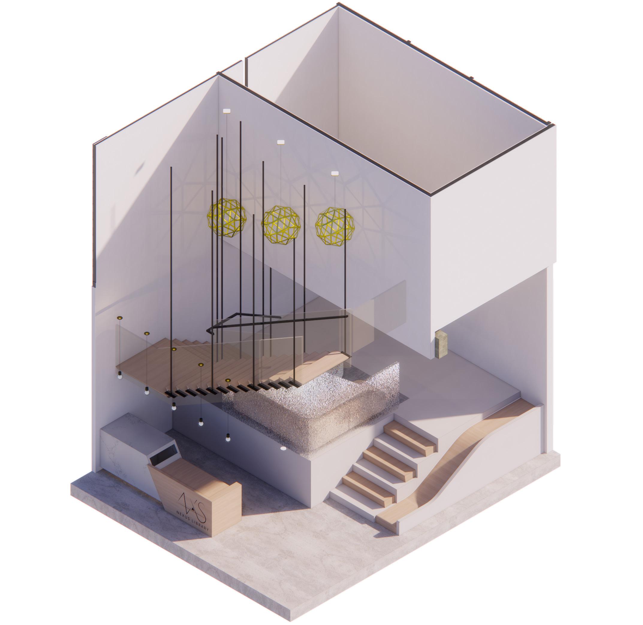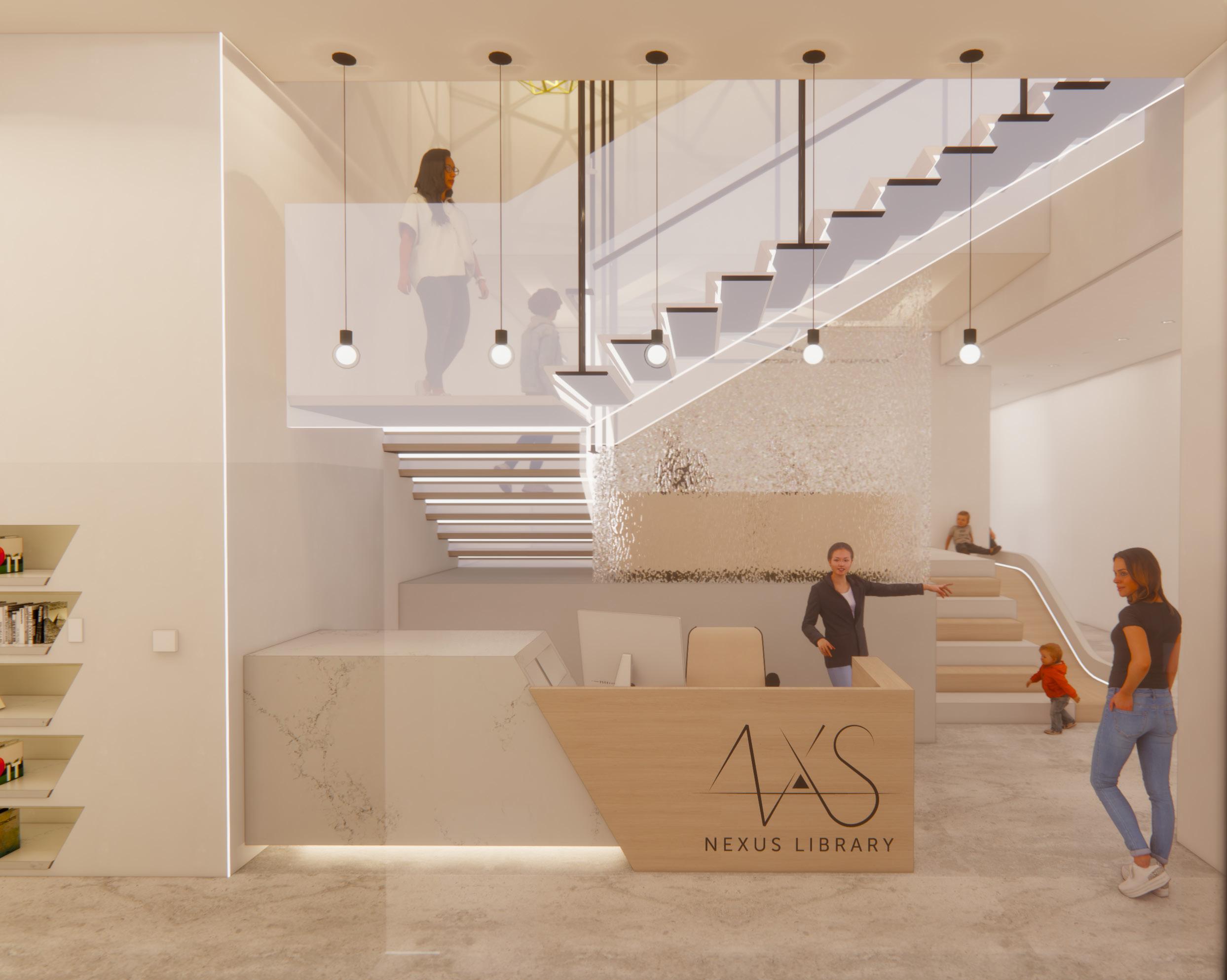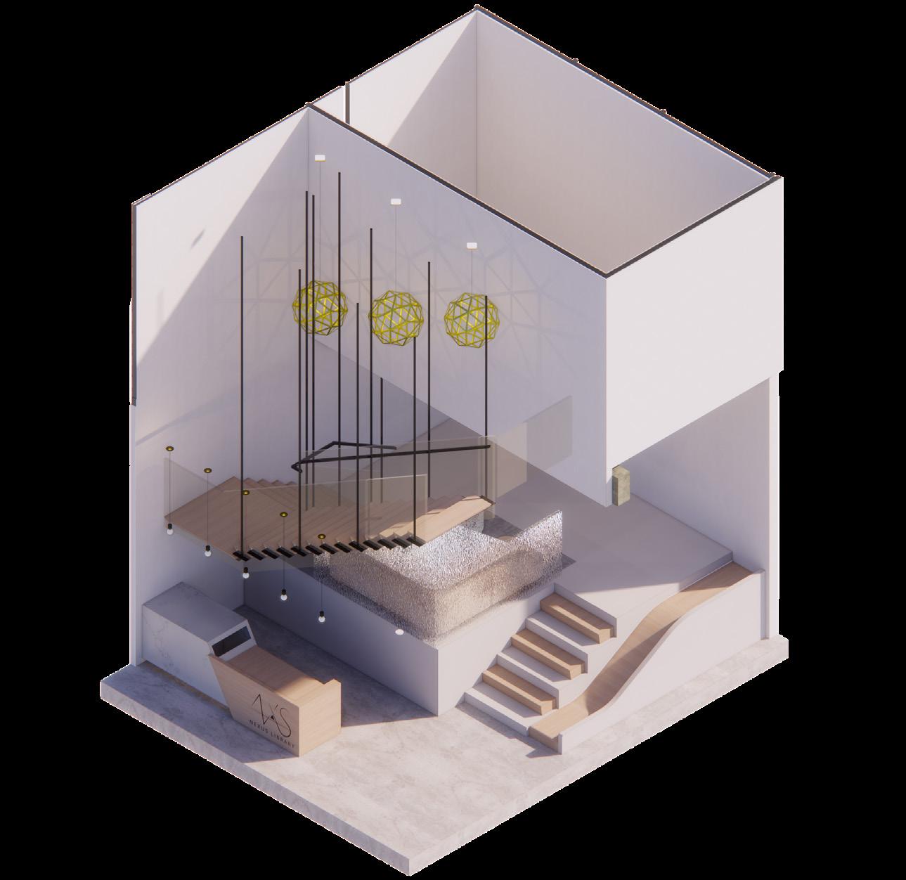 Inspired by studies on emotional intelligence and environmental psychology, the interior environment encourages discovery and exploration by stimulating the five senses through color, materials, and strategic design elements within interactive amenities to create an atmosphere that sparks joy, curiosity, and learning. The library is designed to engage all five senses, providing an immersive environment for reflection, exploration, and growth. By fostering a vibrant and engaged community, Nexus Library creates a link between knowledge, creativity, and connection. It is a hub of energy and inspiration that inspires, educates, and empowers individuals and communities to come together to create a stronger, just, and global society.