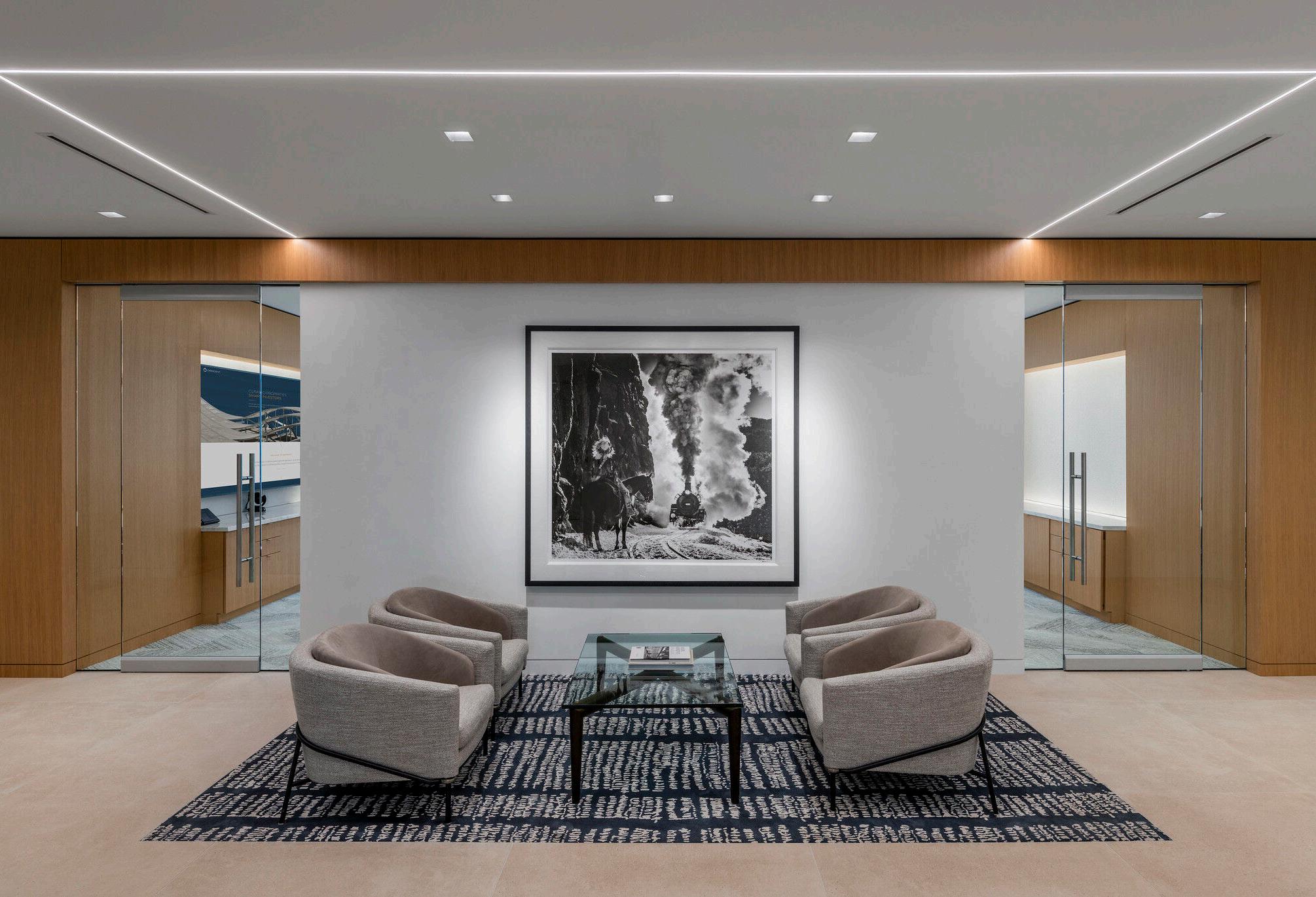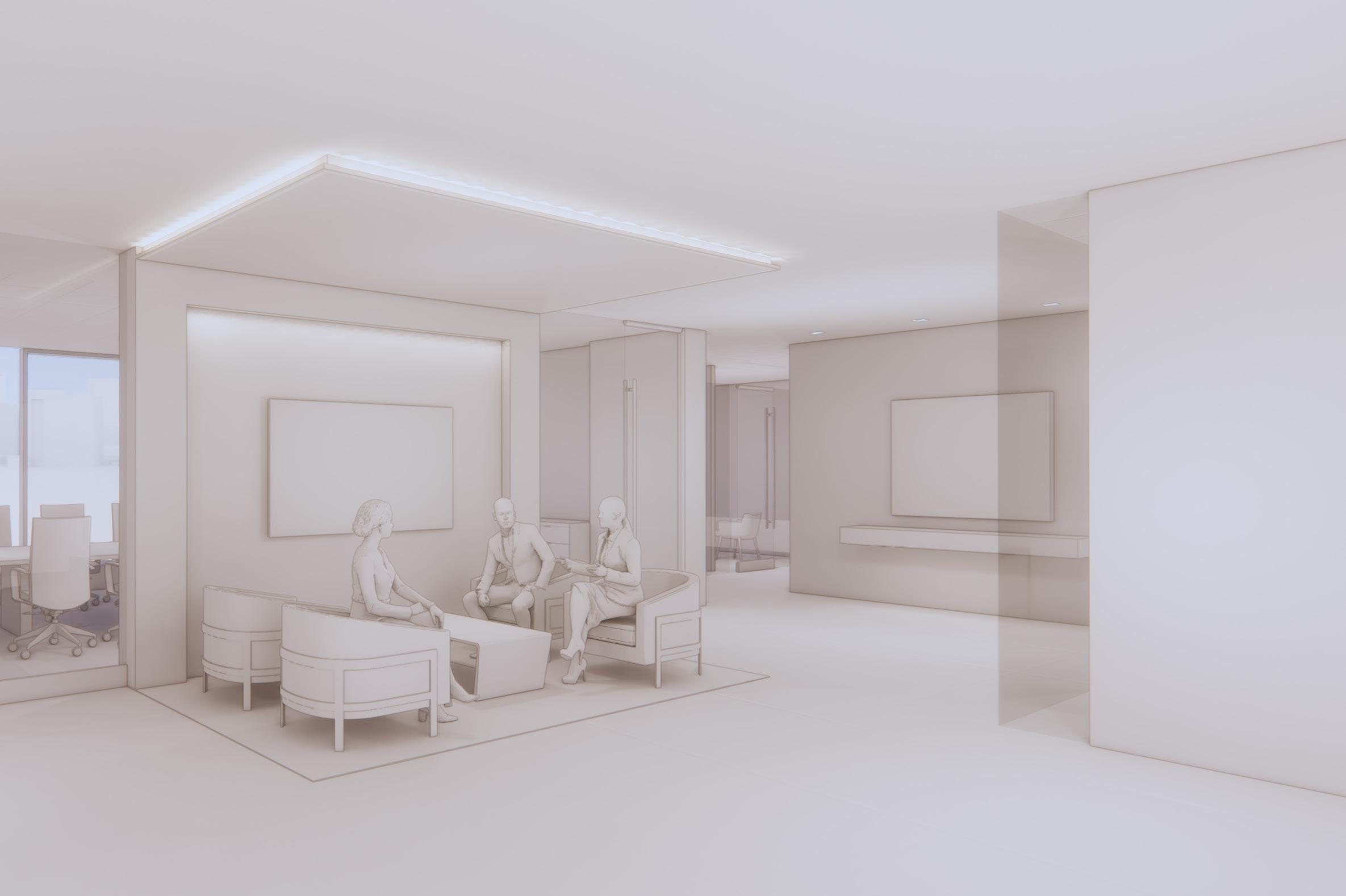 For a Commercial Real Estate Workplace project, I developed and rendered detailed lighting concepts to help clients visualize the design intent during presentations. This rendering is paired with an image of the completed project below, demonstrating the seamless translation of concept to reality. Alongside visualization efforts, I contributed to construction documentation, ensuring the technical accuracy and clarity needed for successful implementation. Seeing the finished space reflect both functionality and thoughtful design was a rewarding testament to the power of collaboration and precision.