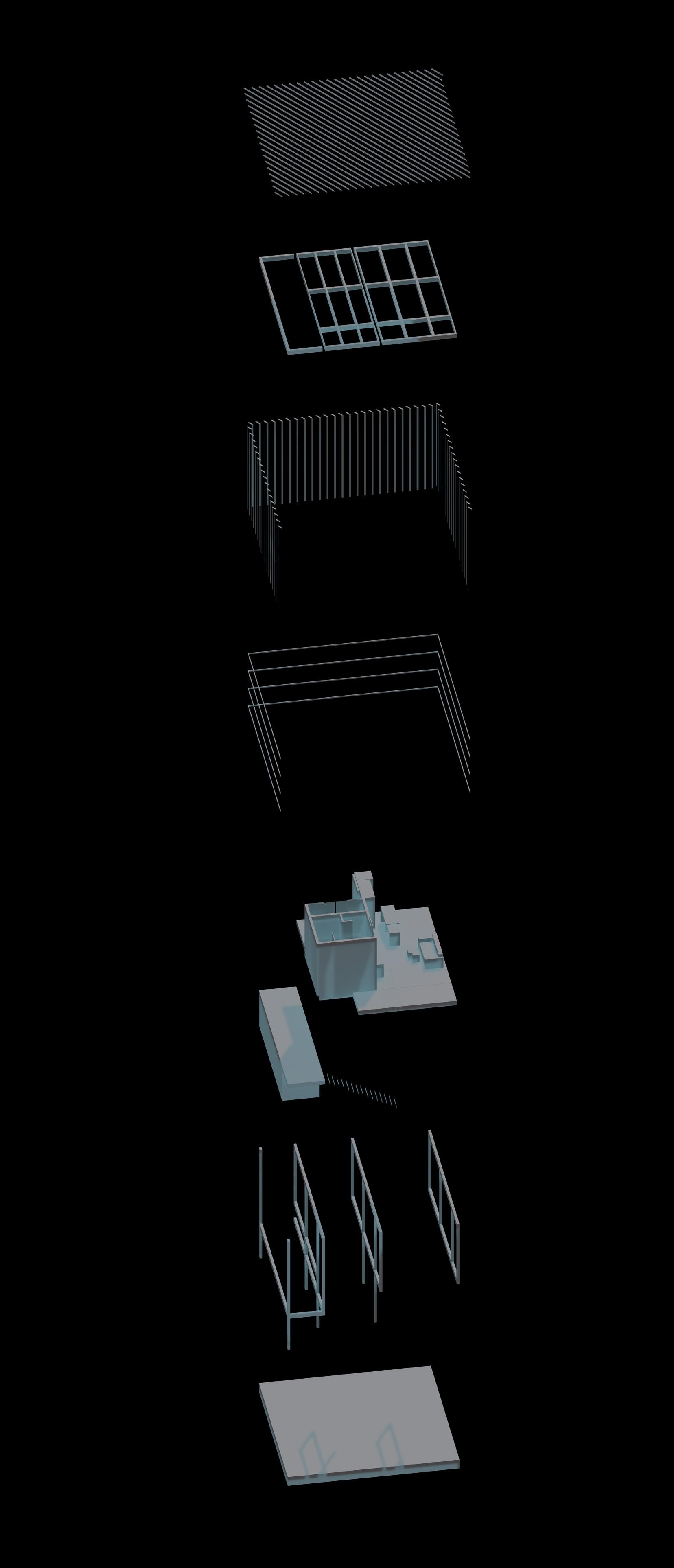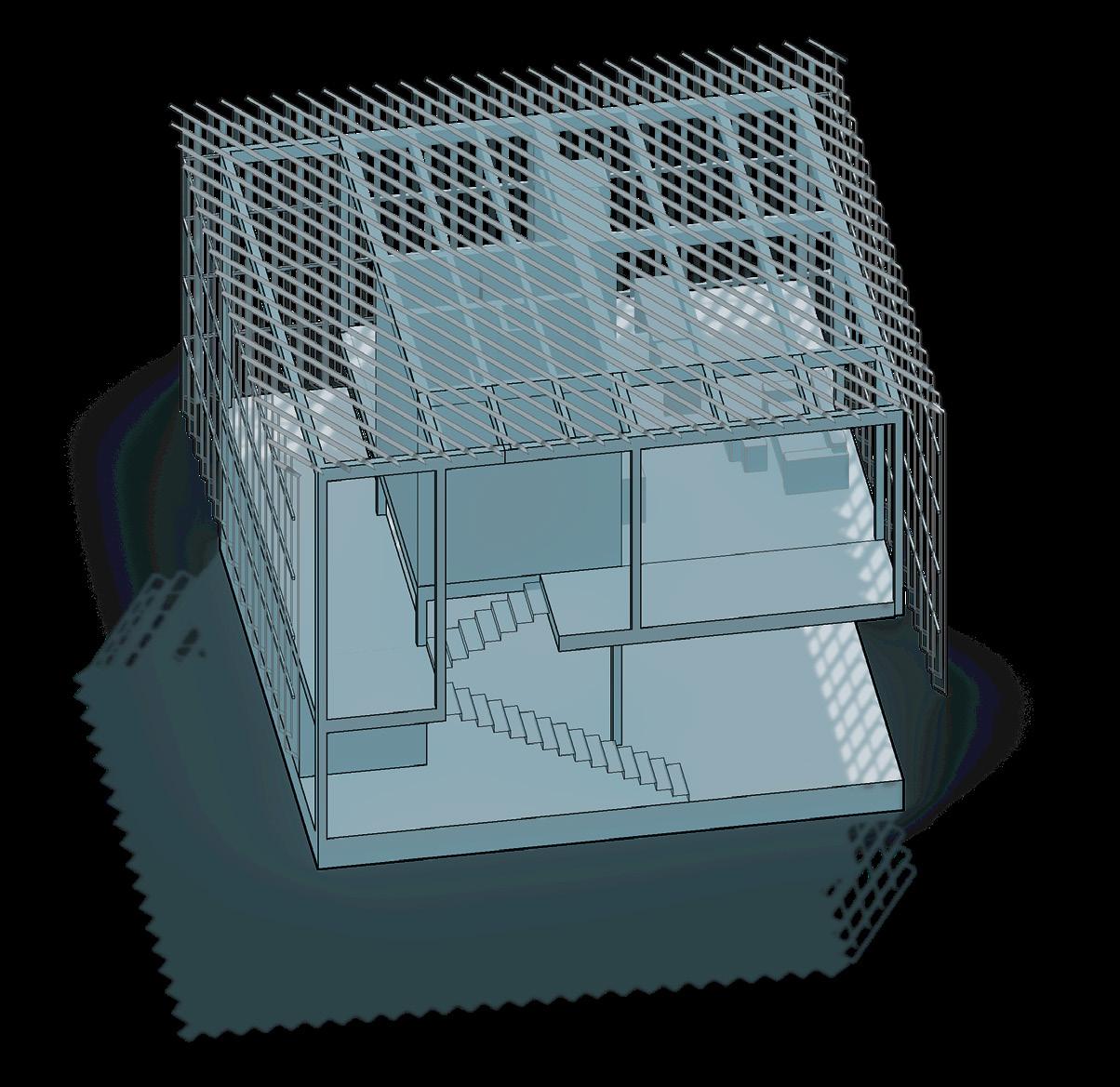 Drawing inspiration from Renzo Piano’s appreciation for lighting, the ADU design utilizes louvres to filter southern sun and reduce solar heat gain, while allowing northern sunlight to pass through. The plan incorporates a nine-square grid, emphasizing modularity and efficiency. Passive ventilation cools living spaces and provides shaded street-level areas for community use. The design also explores varying levels of public and private space in section, ensuring a balance between communal and personal areas.