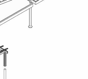 Left: Construction Drawings for Stairs, Welcome Desk, and Banquette located in Auditorium and Cafe Right: Circulating Suspended Stair at Welcome Area Axonometric