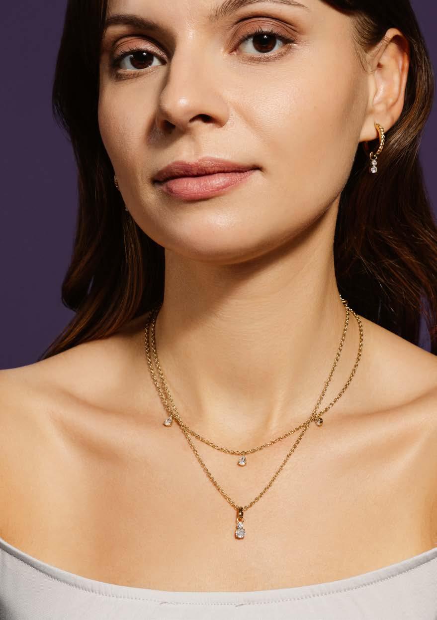 Eine filigrane Schmuckserie, die mit Zirkoniasteinen verziert ist. Diese Kollektion verkörpert eine subtile Eleganz. Jedes Stück fängt das Licht ein und verleiht deinem Look einen Hauch von Glanz und Glamour.