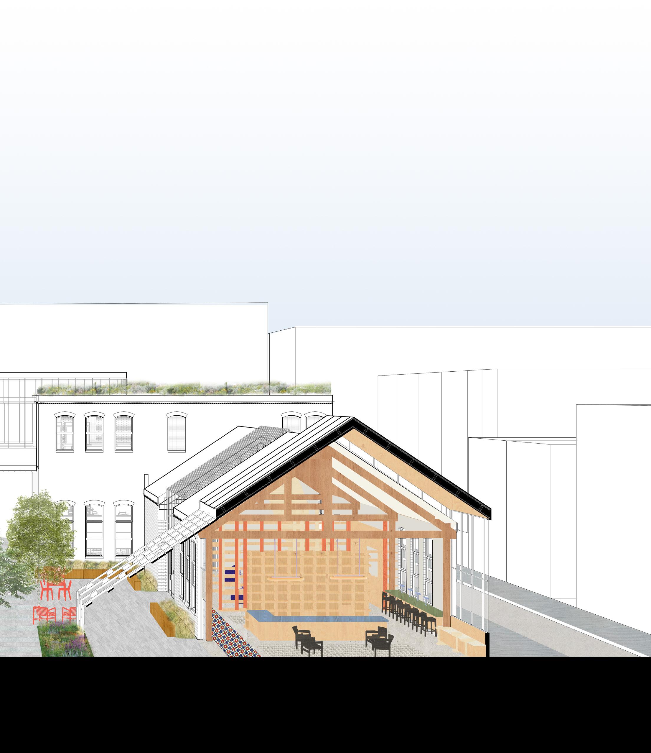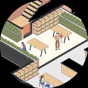 Improving behavioral health and social well-being at the intersection of neighborhoods near Berks station provides the opportunity to create meaningful third-place and foster a more collective community. Multi-scale co-housing with shared spaces and resources encourages connection between diverse residents. Hobby focused education through intergenerational teaching creates a safe environment to support youth and retirees away from home or school.