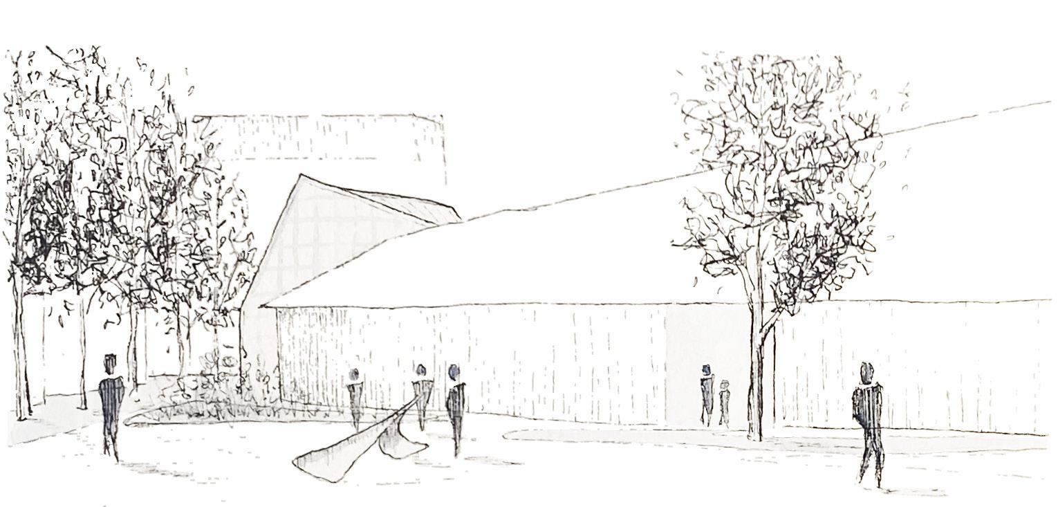 landscape defined by interior program and streetscape developed to improve safety and connection to assets