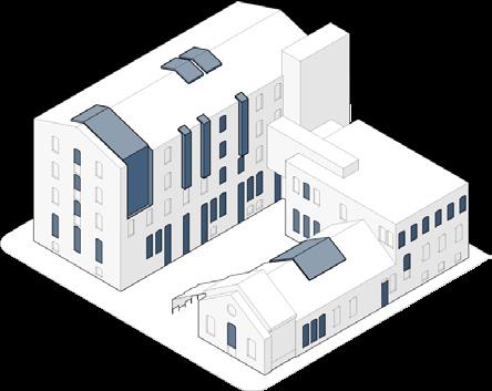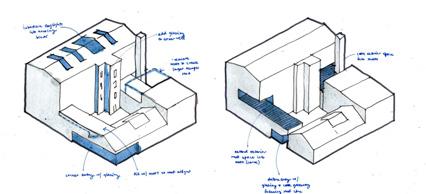 expansive glazing applied to common spaces, skylight extended, existing window grid maintained with new windows and brick infill