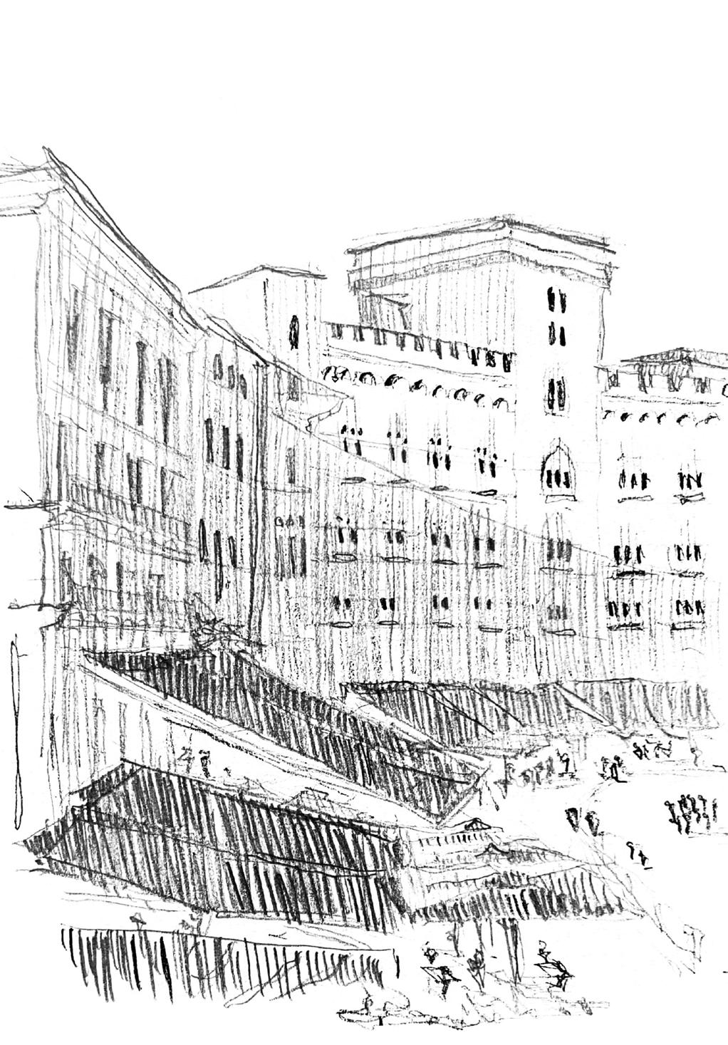 Creative mediums allow for an intimate observation of space and composition. Studies of built precedents provide the opportunity to explore architectural elements at all scales, understand how individuals engage with the built environment, and gain insight into the immaterial qualities of a place. These subjective interpretations are made tangible through the practice of creative representation.